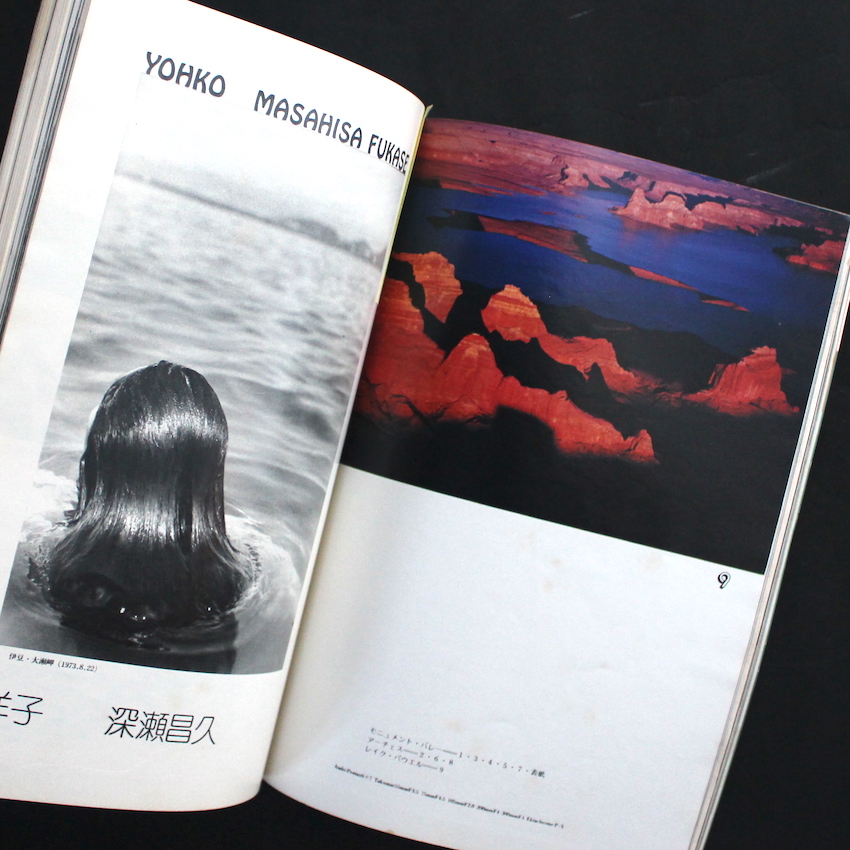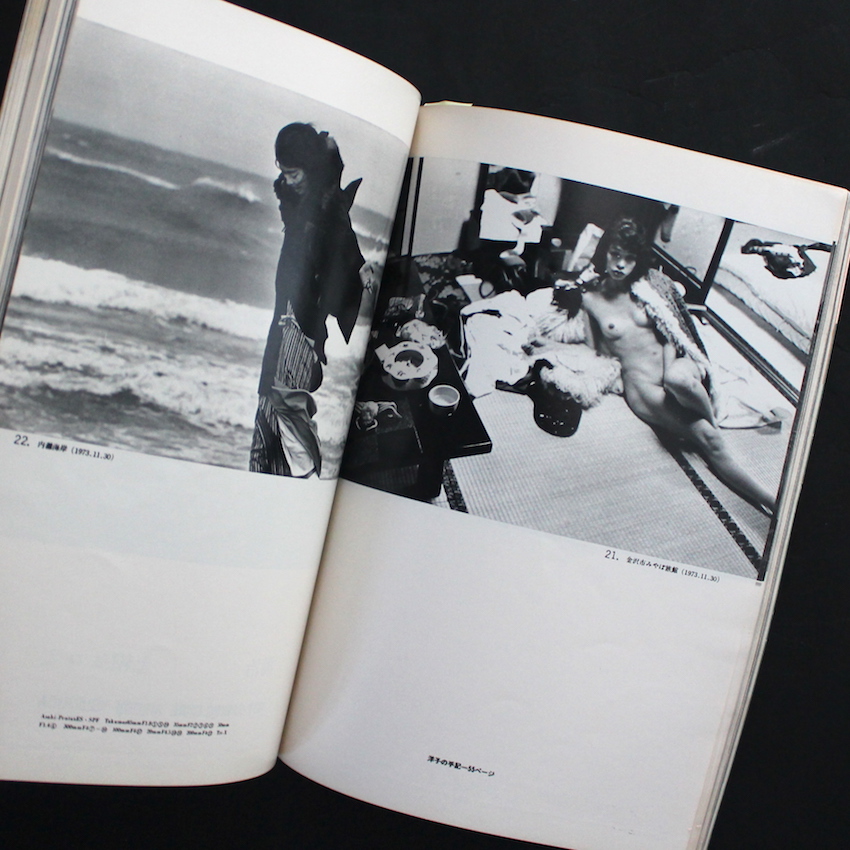 本書「カメラ毎日1974年2月号」の見どころは、何と言っても深瀬昌久の「洋子」が収録されているところです。2018年に、赤々舎から深瀬昌久のキャリアの全貌をまとめた作品集が刊行されましたが、諸々の理由により収録されなかったのが「洋子」です。深瀬が60年代より10年以上もの間撮影を続けてきた、荒木の「陽子」ならぬ、深瀬の「洋子」。荒木が「陽子がぼくを写真家にしてくれた」のならば、深瀬も「洋子がぼくを写真家にしてくれた」とも言えるかもしれません。また「陽子」は、荒木に関するテキストを書くようになってから、自身の作品集も刊行するようになり、文筆家としても知られる存在でありましたが、個人的にはこの「洋子」の文章も大変おもしろいです。『写真家100人 顔と作品 』(1973)などでも「洋子」の文章は紹介されていますが、本書では22の写真図版(P79-P93)の他に、「洋子」撮影による深瀬のポートレート(1枚)やテキスト「ここ半年の黒猫氏(⇒深瀬)と、私と」も収録されており、深瀬ファンには必見の一冊です。