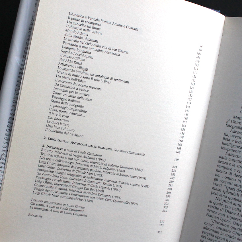 イタリアを代表する写真家であるルイジ・ギッリの作品集『Niente di Antico Sotto il Sole Scritti e Immagini per un'autobiografia』。直訳すると『Nothing old under the Sun -Written and Images for an Autobiography-』。70年代以降より、ギッリが写真を撮り始めてから残してきた「写真」に関するテキスト・エッセイをまとめて1997年に刊行された一冊。2016年にMACKより刊行されている『The Complete Essays 1973~1991』のオリジナル版になります。著者は、ギッリの盟友である写真家のジョバンニ・キアラモンテとパオロ・コンスタンティーニ。自身の写真に対する思考・思想のみならず、ギッリが敬愛したウォーカー・エバンス、ウィリアム・エグルストン、ラルティーグらに関する文章も掲載されています。元版はハードカバー装丁で、132の写真図版も収録されており、大変貴重かつ希少な一冊。テキストはイタリア語。