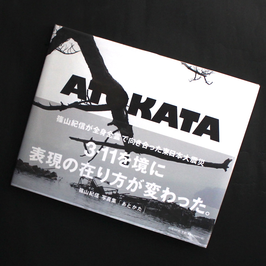 戦後日本を代表する写真家のひとりである篠山紀信の作品集『Atokata(Signed)』。エロスなら荒木経惟、アートなら森山大道、コマーシャルなら篠山紀信と言われた時代もあったそうで、宮沢りえ、樋口可南子、高岡早紀といった女優のヌード作品が一般的には有名でもありますが、コマーシャル写真を極めたからこその芸術性も高く評価されています。荒木経惟の作品集のデザインを多数手がけた油谷勝海は、自著『パワー・デザイニング』(1984)で、『晴れた日 / A Fine Day』こそ写真集の教科書であると述べており、また同じく日本代表する写真家・中平卓馬も、篠山との共著『決闘写真論』等で、健康的かつ真っ直ぐな篠山の作品に敬意を示しています。本書は、東日本大震災後の東北を撮影した図版で構成された一冊。篠山紀信の写真のうまさが際立った作品集でもあります。以下、写真家によるあとがきより「それは神の悪戯でも凄惨な地獄でもなく、静謐で尊く、荘厳な光景であった。僕は自然の力に畏怖し、畏敬をもって凝視するしかなかった」。写真家サイン入り。