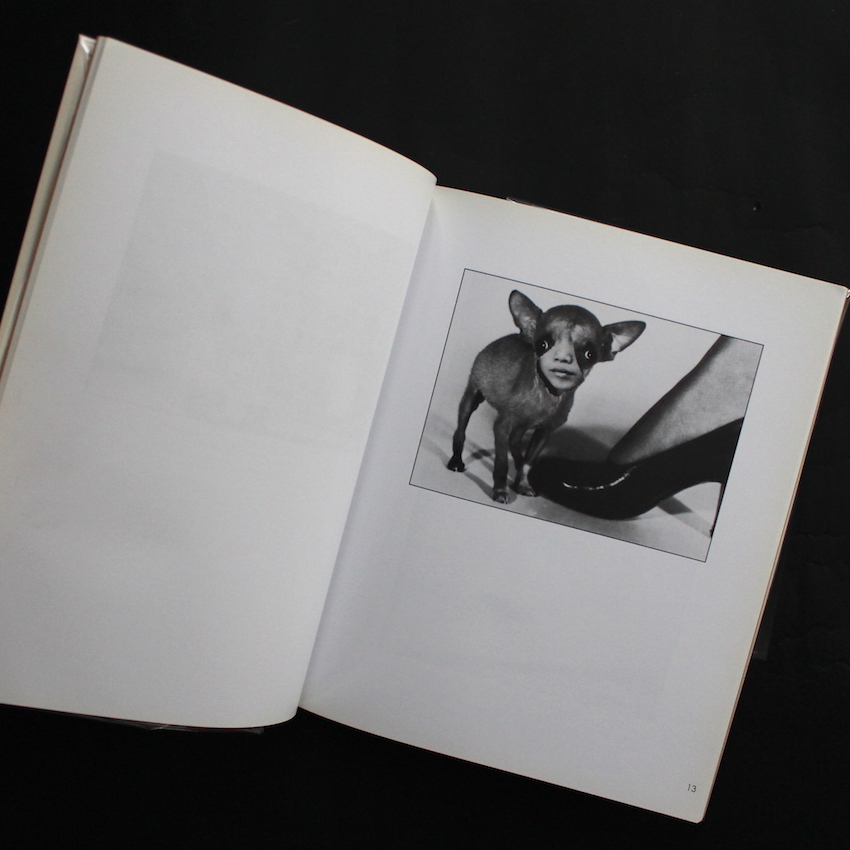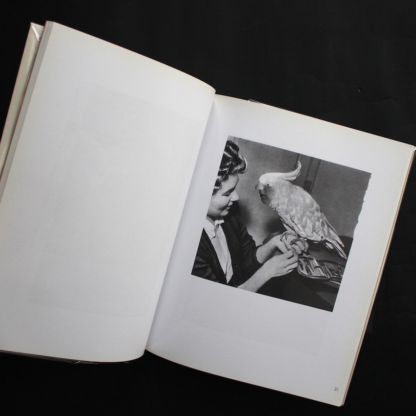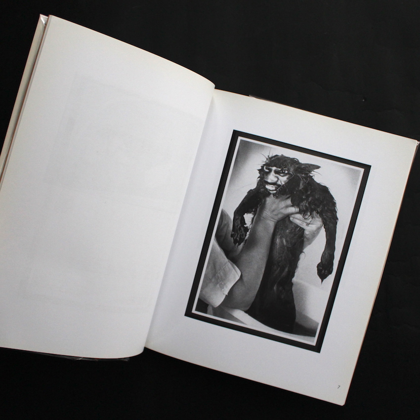 イギリスのアーティストであり、70年代後半から80年代に活動したパンクバンドCRASSのメンバーとしても知られるジー・ヴァウチャーの作品集『Animal Rites』。1945年生まれ。70年代後半に隆盛するイギリスのパンクシーンですが、その代名詞でもあるセックス・ピストルズやクラッシュといったバンドが商業主義的であることに反し、無政府主義パンクを意味する「アナーコ・パンク」を掲げたCRASS。ジーはCRASSのアートワークを担っており、絵画やコラージュといった作品を発表しています。本書は、ジーの2作目の作品で、動物の写真を用いたコラージュ集です。鳥や猫の写真の顔の部分に人間の顔を重ねていたり、また人間の写真の顔の部分に動物の写真を重ねています。本書の副題は「a pictorial study of relationships」とありますが、動物と人間の関係について考察されており、人間はみな動物に属しますが、一部の動物はより人間的であるという意味合いが込められているそうです。写真家サイン入り。