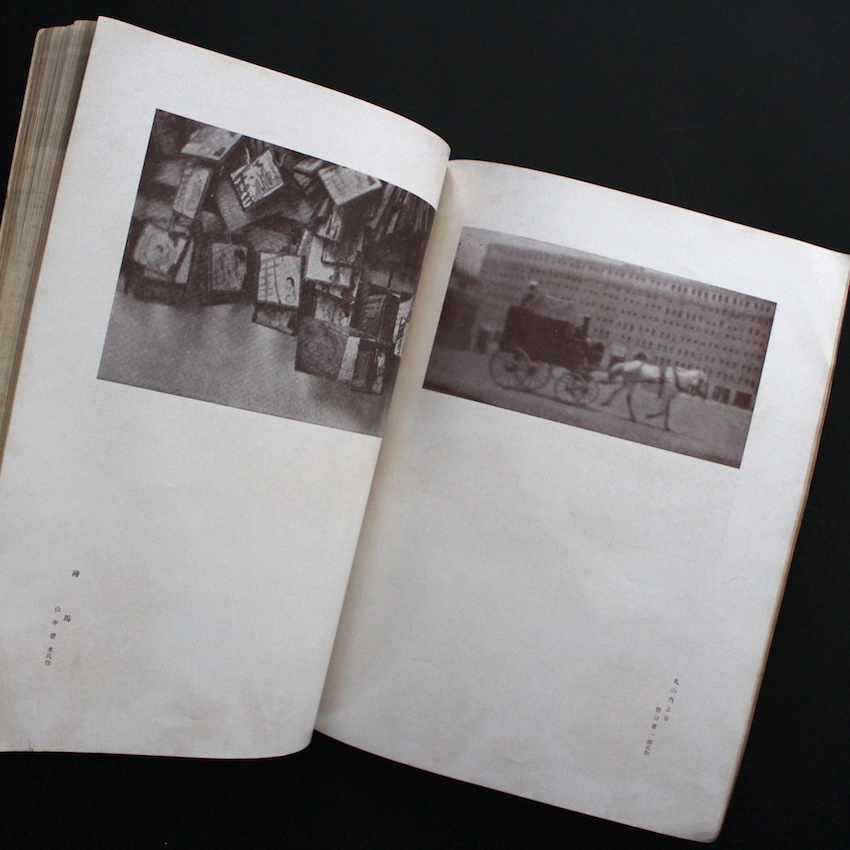 本書は、株式会社資生堂の初代社長で、大正から昭和の黎明期に写真の振興・発展に多大なる貢献を果たしたアマチュア写真家でもあった福原信三を中心として立ち上げられた写真同人「寫眞藝術社」より、1920年代初頭から関東大震災(1923年9月)までの短期間の間に出版されていた雑誌『寫眞藝術』の第2巻第8號。ピグメントを中心とした技巧主義的な志向への反発や、より自由な精神のもとで自由な表現を求めるべく立ち上げられ、そのような主張をメンバー撮影による写真図版や、テキストによる写真論をもって表現されました。「花椿」のシンボルマーク(福原信三デザイン)や資生堂宣伝部の立ち上げに代表されるように、信三の徹底した美意識は誌面づくりにも反映されており、ユニークなカラーによる抽象画を表紙に用い、ルノアールの絵画作品などの挿絵・口絵が贅沢に織り込まれています。編集は信三の秘書で「信三の手」とも言われた安成三郎が担当しています。(The Japanese Photobook 1912–1990 収録)