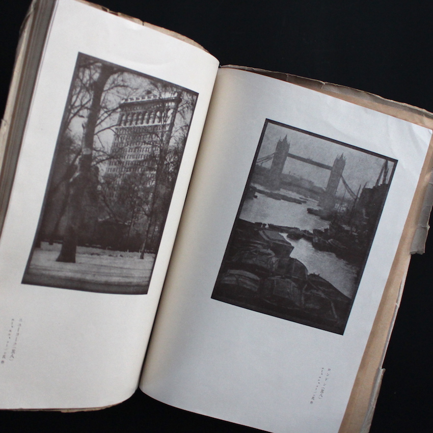 現在から約100年前、時にして1920年代前半から関東大震災が発生した1923年9月まで発行が続けられた「写真同人誌」の先駆け『寫眞藝術』の第2巻第3號。同誌を制作していた「寫眞藝術社」は、戦前期を代表する写真家で、日本において写真の振興に多大なる貢献を果たした福原信三のファースト写真集『巴里とセイヌ』、そしてセカンド『光と其諧調』(ともに1923)を上梓した出版社でもありました。そして、これら両作品集に収録された福原撮影による写真図版、及び福原が唱えた写真芸術論(テキスト)の連載が紹介されていたのが雑誌『寫眞藝術』になります。この同人は、福原信三のほか、弟で写真家でもあった路草、そして道草の知人で音楽評論家であり、写真も撮っていた大田黒元雄、そして信三の後輩にあたる掛札功の4名です。本号は別名「関西号」と呼ばれており、福原らの作品のほか、淵上白陽の写真及びテキスト、また浪華写真倶楽部のメンバーであった米谷紅浪や梅阪梅吉(鶯里)らのテキストも収録されています。(The Japanese Photobook 1912–1990 収録)