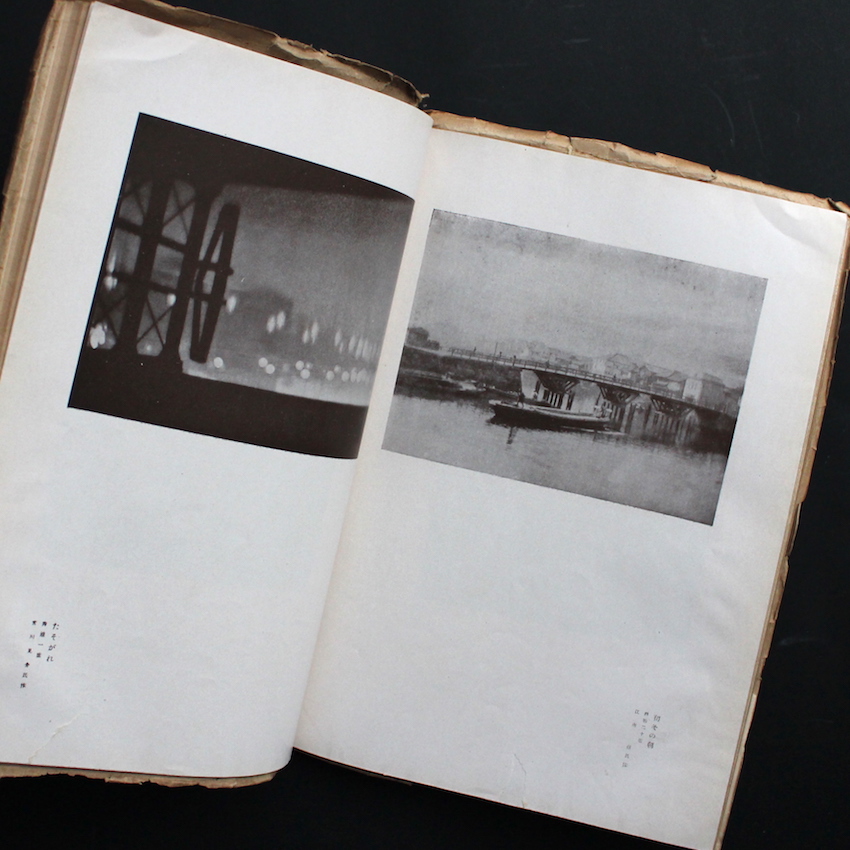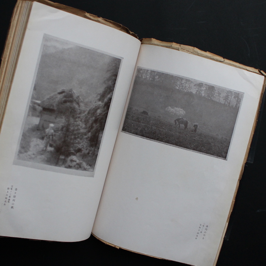 戦前の日本を代表する写真家・福原信三らによって設立された「寫眞藝術社」より刊行されていた写真同人誌『寫眞藝術』の第2巻第1號。福原が弟の路草と音楽評論家の大田黒元雄、また千葉医学専門学校(現:千葉大学)の後輩でもあった掛札功とともに1921年6月に「寫眞藝術社」は立ち上げられ、福原が唱えた写真論「光と其諧調」などを基軸とした主張のある「写真同人誌」の先駆けとも言える雑誌が同時に刊行されました。『寫眞藝術』は、関東大震災発生までの1923年9月まで制作が続けられ、またその間には福原のファースト写真集『巴里とセイヌ』(1922年)や、同誌で長らく連載が続けられたエッセイも合わせて収録されたセカンド写真集『光と其諧調』も発刊しています。本号では福原の「リユクサンブルグ公園」、路草の「京都の湯屋」、大田の「木挽町の午後」、掛札の「ラインアンパイヤー」の他、淵上白陽の「竹林」「市ケ原村の秋」などが収録されています。(The Japanese Photobook 1912–1990 収録)