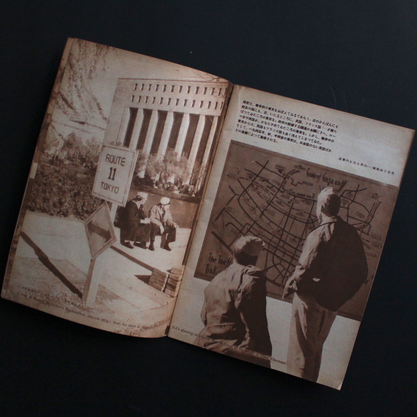 本書は、1945年の第二次世界大戦後の翌年に「文化社」より刊行された写真集。文化社の前身は「東方社」。かつて対外宣伝文化誌として出版されていた『FRONT』を制作していたのが東方社であり、終戦と同時に解散。そして、文化社として新たに再出発。東方社の美術・写真部門を担当していた原弘と木村伊兵衛の他、中島健藏、山川幸世らが参加しています。カバーの表紙は、木村伊兵衛によって撮影された新宿駅周辺の闇市。赤地にモノクロの写真を載せた図版は、焼跡となった当時の東京の象徴とも言われています。その他、銀座の中央通りや日本橋・人形町などの変わり果てた東京の街並みが描写されていますが、撮影は木村伊兵衛など文化社のスタッフによるもので、レイアウトは原弘、テキストは中島健藏が担当しています。東方社が所有していた紙やインクが利用されて印刷されていることから、物資に乏しかったこの時代においては、群を抜く出来栄えと評価されています。第2版。(The Japanese Photobook 1912–1990 収録)