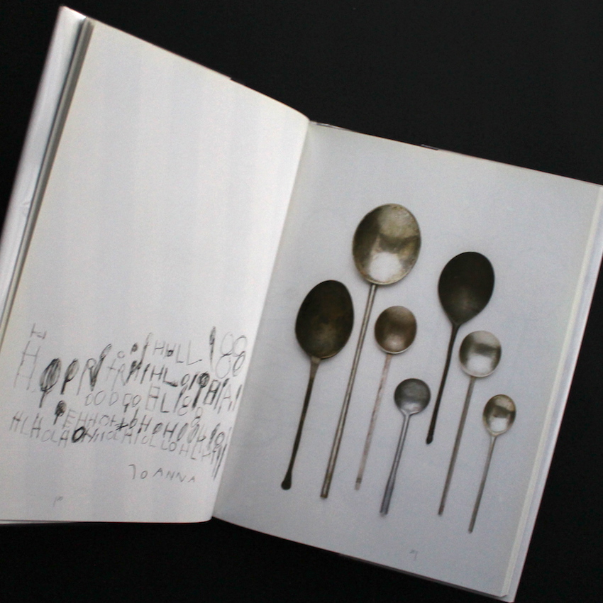 ドイツの彫金師でジュエリー作家、ヘルマン・ユンガー(1928-2005)による作品集『Herbei, herbei, was Loffel sei…』。フランクフルト近郊の町で生まれたヘルマン・ユンガーは、1947年に19歳で金銀細工について学ぶため学校に入学しますが、戦後ようやく再開した学校には彫金用の道具や素材となる金属がなかったため、絵画や彫刻のトレーニングを受けていたようです。しかしこの時のデザイン力が、伝統的な金細工に新たな表現を加えることになり、ドイツを代表する彫金師、デザイナーとしての地位を確立していきました。本書は、ヘルマンが蒐集したスプーン・コレクションの作品集です。用途は同じでも様々なデザインと素材を与えられたスプーンの数々。そしてTHE WHOの歌詞など、スプーンにまつわる言葉の数々が手書きで添えられています。同様にスプーンの写真集をプロダクトデザイナーのジャスパー・モリソンも作っていますが、機能的なデザインに着眼するジャスパーに対して、本書はスプーンという日用品に向けるヘルマンのハートフルな眼差しが感じられます。ポスター付属。1994年刊行・第2版。