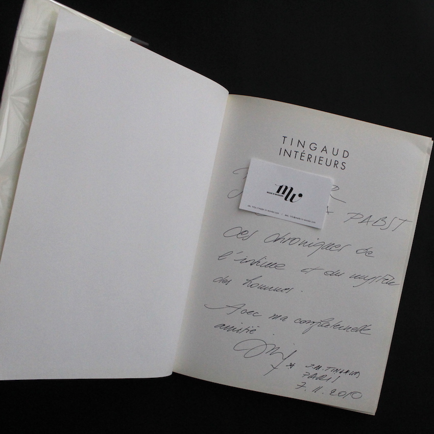 フランスの写真家Jean-Marc Tingaudの写真集『Tingaud / Interieurs(Signed)』。本書は、1991年に同じくフランスの写真家クロード・ノリ率いるコントルジュール社より刊行されたTingaudによるインテリアの写真集。フランス、イタリア、クロアチア、ポーランド、モロッコのインテリア、ウォールの断片をユニークに切り取った図版で構成されています。秩序なく何気なく置かれた日常品を、鮮やかなカラー配色と計算され尽くしたコンポジションをもって撮影し、その空気・その時間の記憶を刻み込むように撮影しています。土地やモノへの愛着を感じる作品の数々。インテリア写真というよりは、スティル・ライフ的な様相を呈しており、フランス人写真家ならではの豊かな感性が光る一冊です。