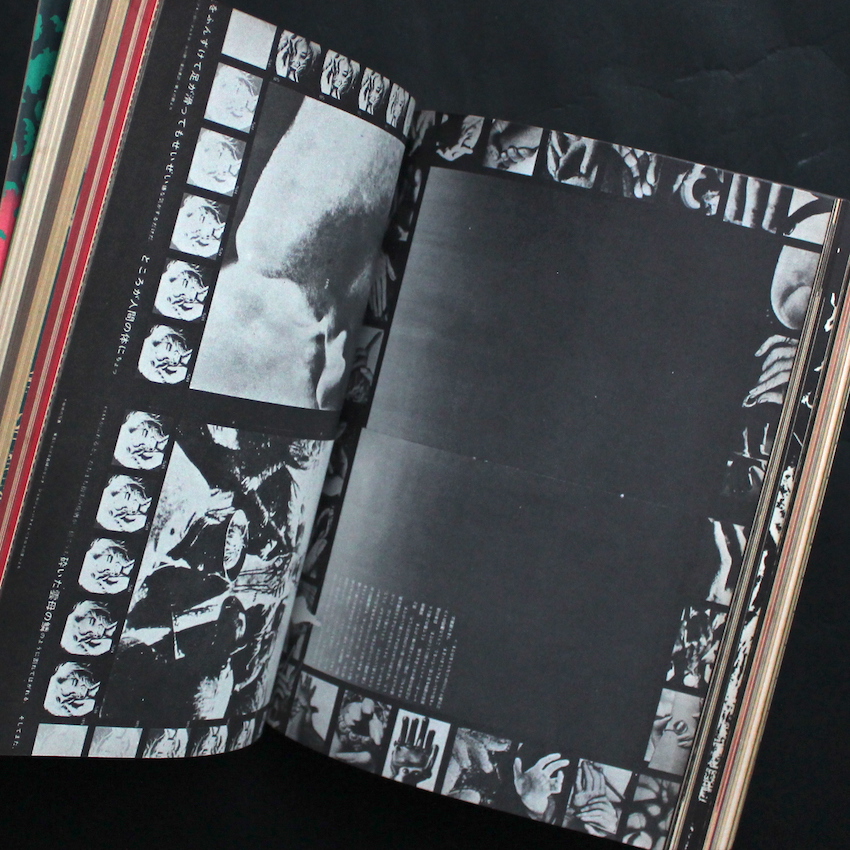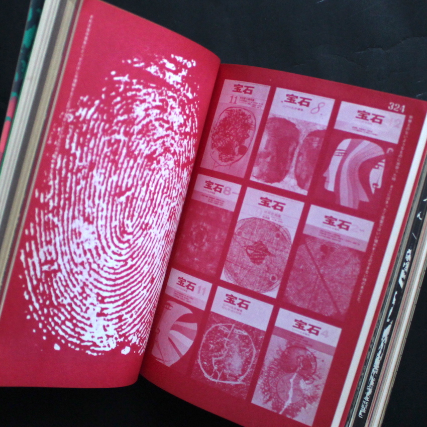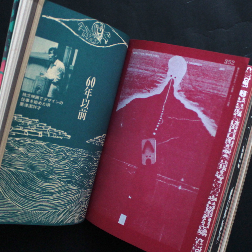 戦後のグラフィックデザインを牽引したデザイナー、粟津潔の作品集。1929年生まれ。独学で絵画やデザインを学び、1955年にポスター作品「海を返せ」で、当時のグラフィックデザイナーの登竜門的なコンペであった「日本宣伝美術会展」で日宣美賞受賞。1960年には黒川紀章ら建築家が起こしたグループ「メタボリズム」に参加。亀倉雄策などの戦後のモダンデザインの潮流とは一線を画すオリジナリティあふれるイメージを生み出してきた粟津潔。2009年に亡くなりますが、その没後も度々展覧会が開催されるなど、その唯一無二な創造力が現在にも刺激を与えています。本書は、1970年に田畑書店から発行された作品集。2006年に復刻版も出ていますが、こちらはオリジナルです。初期のスケッチや50年代からの作品を収録。インパクトのあるポスターや理知的な装丁、独特のアジのあるイラスト、印鑑や文字をつかった呪術的な作品など、粟津潔の表現としかいえないグラフィックデザインの数々は今も色褪せることなく魅力的です。プラスティックカバー付属。(The Japanese Photobook 1912–1990 収録)
