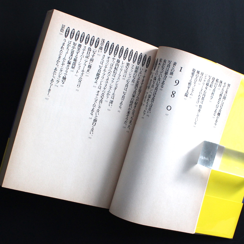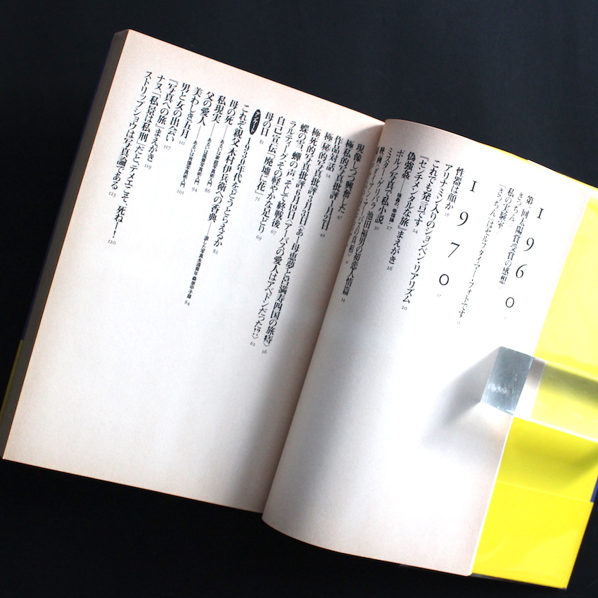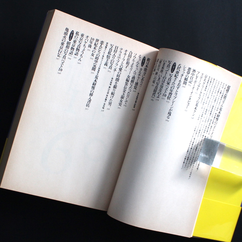 日本の写真家・荒木経惟の作品集。「写真はメディアである」ならぬ「荒木はメディアである」と明言を残したのは、荒木を中心とした雑誌を作り、80年代を席巻した『写真時代』の編集長・末井昭。「スエー」と呼ばれ、そのアイデアと編集能力は荒木からも絶大なる支持を得ていました。荒木がメディアと称されるのは、写真家としての能力のみならず、その独特のキャラクターとユニークなコトバ力。本書は、1960年代から90年代半ばに、荒木が数々のメディアで残してきた文章やコトバを一挙にまとめた400ページを超える大著。「1964年の第1回太陽賞受賞の感想から始まり、1994年の私情がリアリズムになったに至る、ここにおさめられた荒木経惟の文章や発言は、不思議な流動物である写真をわしづかみにしようとする試みであり、30年にわたるそれらの言葉は全て何らかの意味での写真論であり、世界や時代に対する荒木の独特の姿勢を表明し、写真によって生かされ、写真に生を与えてきた写真家の特別なモノローグとなっている」(帯より)。伊藤俊治による責任編集。