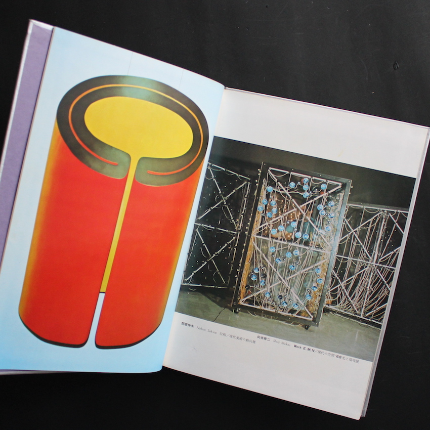 戦後日本を代表する現代美術家・篠原有司男と、写真家・原栄三郎、美術評論家・藤枝晃雄とのコラボレーション作品集『空間の論理 日本の現代美術 / Logic of space Contemporary Japanese Art(Signed)』。69年に渡米するまでに、すでに活発な活動を行なっていた篠原が、原に対して「片っ端から現代美術をカメラに収めてみよう」という投げかけをして、68~69年の間に様々なエキシビジョンを訪れて、原が撮影した図版が収録されています。2018年に行われた展覧会「1968年 激動の時代の芸術」が人気を博したように、政治・経済・教育等で様々な動きが重なりあっていた時代に生まれた戦後日本の現代美術も目を見張るものがあります。赤瀬川原平、粟津潔、勝井三雄、倉俣史朗、黒川紀章、田名網敬一、高松次郎、野中ユリ、宮脇愛子といった、後に第一線で活躍することになるアーティストたちの若かりし時代の貴重な記録が、モノクロ・カラーで収録されています。大変貴重な篠原有司男サイン入り。