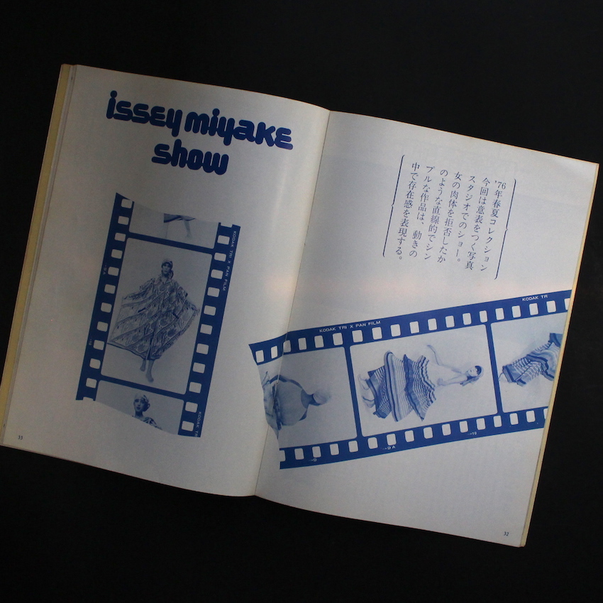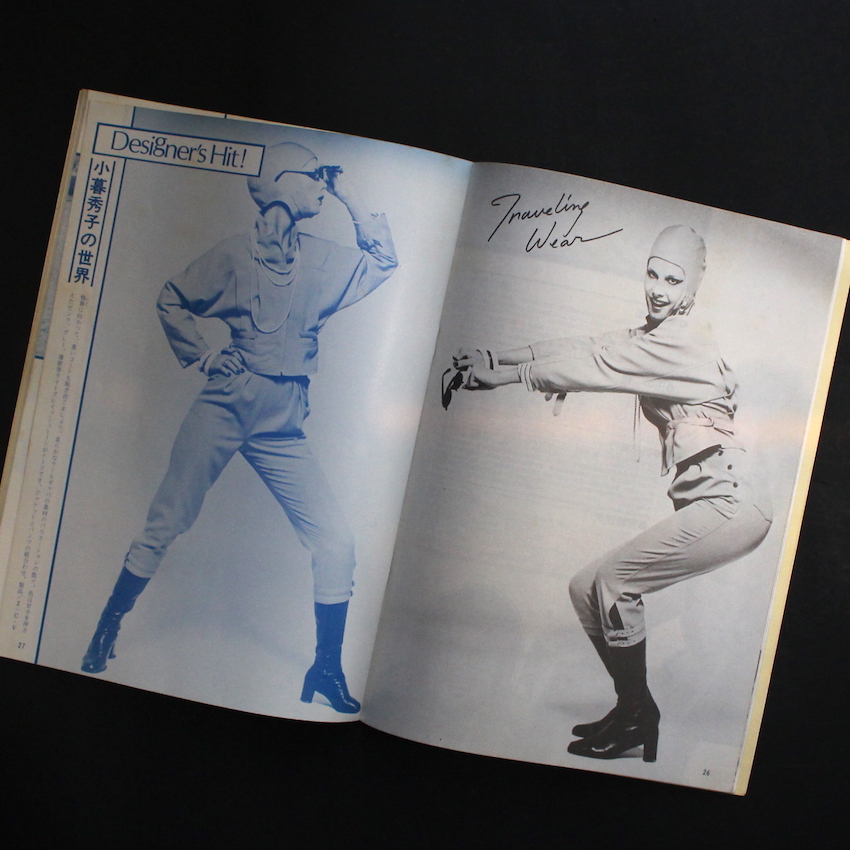 1970年代半ばに発行されていたファッション情報誌『ファッションカレント』の通巻第2号。この初期のファッションカレントは比較的「読み物」的要素が強く、後半号になるにつれて、ビジュアルを主体とした「見る物」としての完成度が上がっていき、誌面のクオリティーも魅力的になっています。本号の収録内容は「特集 アメリカからの伝言(武藤直路、鯨岡阿美子、佐藤忠男、田川律、志賀信夫、レイコ・アーマン山崎)」「男をファッション化する(浜野安宏・密着インタビュー)」「トップヘアデザイナーカタログ」「デザイナーズヒット(小暮秀子)」「シリーズ評論(川村都)」「アクセサリー春秋」「ファッショナブル・コスメティクス」「江戸の女(高橋雅夫)」「サロンマップ(自由が丘)」「エスティックカレント(川崎享二)」「クリエイティブメークアップ」(木下ユミ)」「ロンドンから帰った川島文夫」「明日への美容意識(川上忠重)」など。