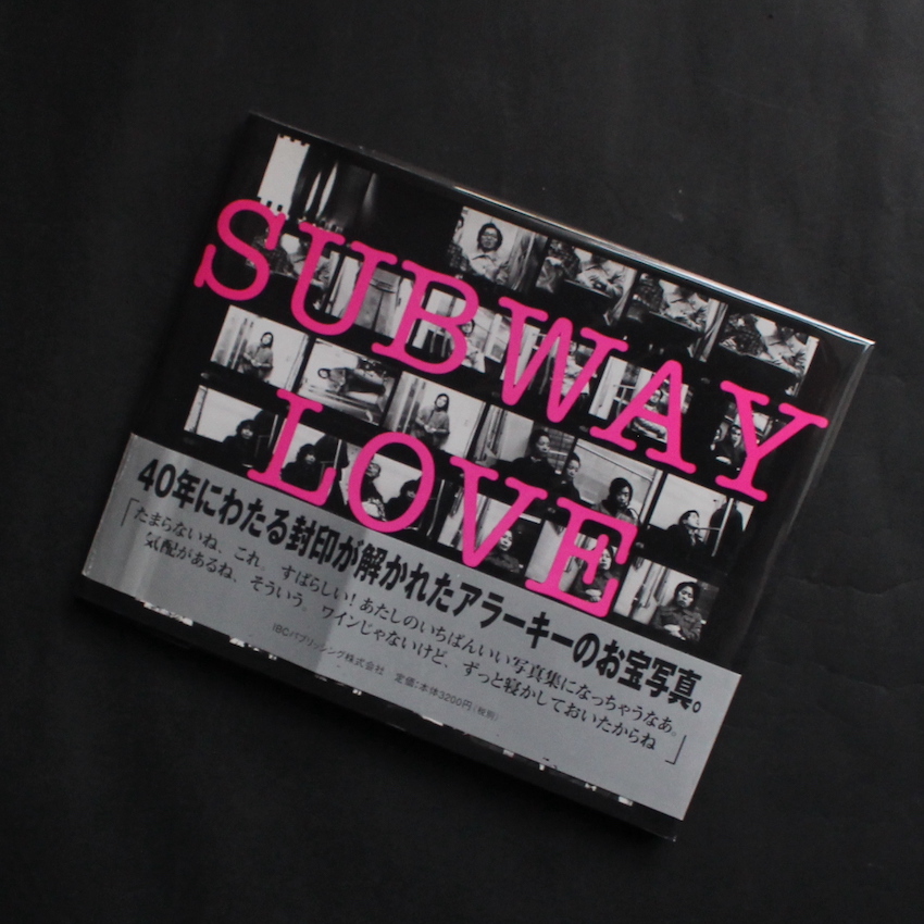 日本を代表する写真家・荒木経惟の写真集『Subway Love(With OBI)』。下駄職人でありアマチュア・カメラマンであった父の影響を受けて写真を始め、千葉大学工学部写真印刷工学科を卒業後、電通に就職。在籍中に広告写真を撮る傍ら、会社の機材を使って新たな写真芸術を探求していきます。70年代より『おー日本』『センチメンタルな旅』等現在まで語り継がれるセンセーショナルな作品を発表、卓越した時に過激なヌード、人情味に溢れたスナップは世界の写真ファンを虜にし、現在までに400冊もの写真集を刊行している偉大なる写真家・荒木経惟。本書は、電通社員時代、通勤途上の地下鉄内で10年近くの間撮り続けていた図版で構成された一冊。人間との出会い・人間模様が凝縮された時間・空間に取り憑かれた写真家が、70年代初頭に発表を試みたものの、Walker Evansの『Many are called(1966)』の存在を知り、真似されたと思われることを嫌って寝かしておいた貴重な作品群。帯付。