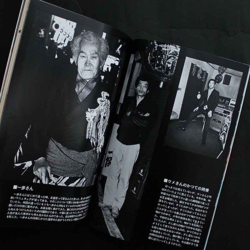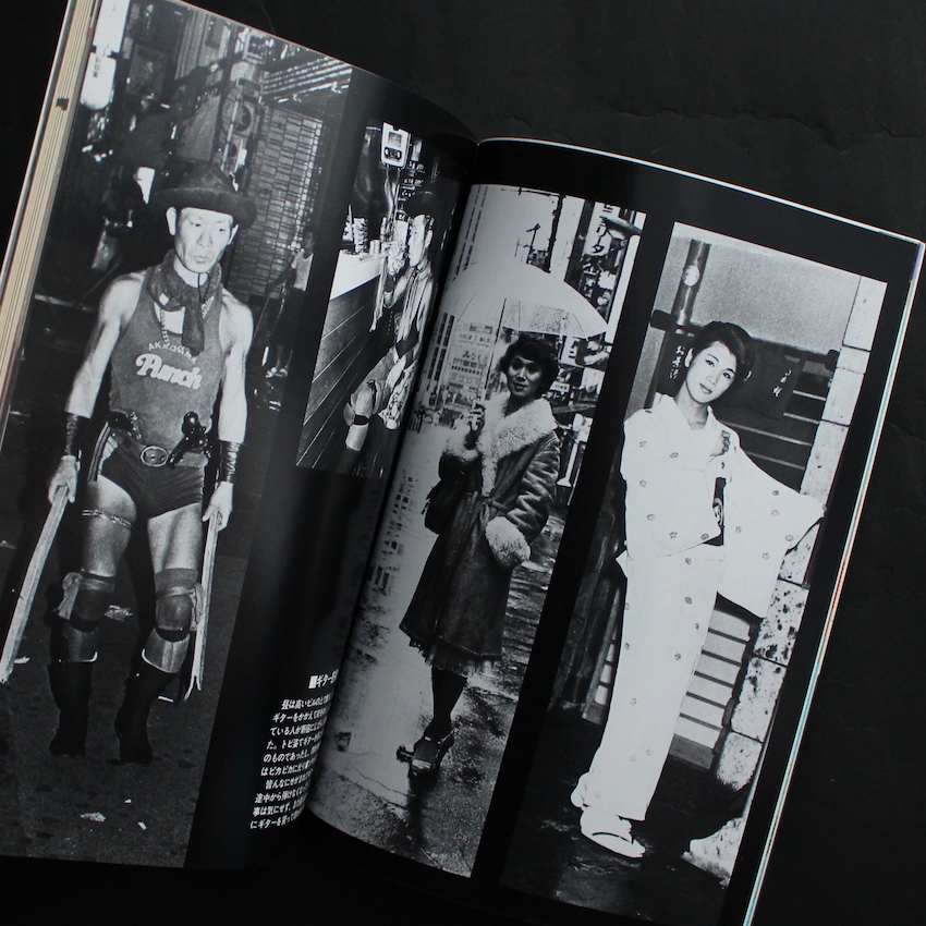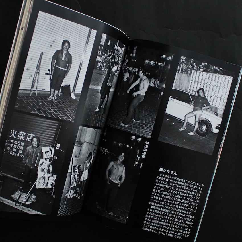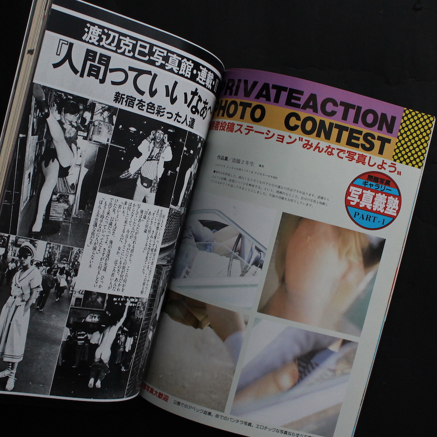 本書は、1980年代に刊行されていた写真雑誌『月刊・問題写真 / Mondai Shashin』の1984年9月号創刊2号で、荒木経惟・末井昭のコンビでこの時代を席巻していた『写真時代』の波に乗って、深瀬昌久をメインにした『流行写真』や、石垣章をメインにした『写真生活』など、多くの「写真」関連の雑誌が発売されていた中の一冊。基本的にはヌード・エロスをメインとしたもので、写真家の連載や読者の投稿写真などを織り交ぜた構成でしたが、本誌は、創刊から第9号まで『新宿群盗伝伝』や『ディスコロジー』で知られる渡辺克巳が毎号連載していました。本号では、「人間って、いいなあー<新宿を彩った人々>」のタイトルで、16ページに渡って、個性的な人々のポートレートが紹介されている他、巻頭には渡辺撮影による珍しい新宿の風景写真(カラー)も収録されています。