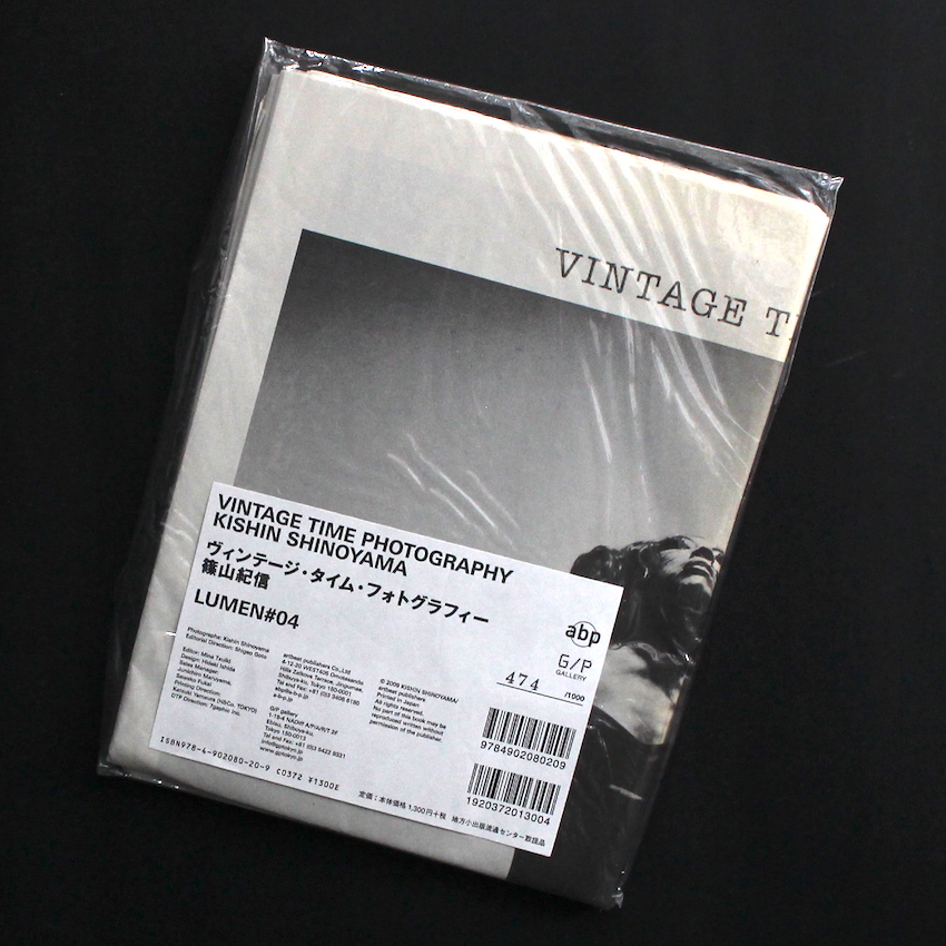 戦後日本を代表する写真家のひとりである篠山紀信の作品集『ヴィンテージ・タイム・フォトグラフィー Lumen #04』。エロスなら荒木経惟、アートなら森山大道、コマーシャルなら篠山紀信と言われた時代もあったそうで、宮沢りえ、樋口可南子、高岡早紀といった女優のヌード作品が一般的には有名でもありますが、コマーシャル写真を極めたからこその芸術性も高く評価されています。荒木経惟の作品集のデザインを多数手がけた油谷勝海は、自著『パワー・デザイニング』(1984)で、『晴れた日 / A Fine Day』こそ写真集の教科書であると述べており、また同じく日本代表する写真家・中平卓馬も、篠山との共著『決闘写真論』等で、健康的かつ真っ直ぐな篠山の作品に敬意を示しています。本書は、2009年にG/Pギャラリーのアートビートパブリッシャーズが刊行していた新聞サイズの限定写真集「Lumen」シリーズの第4号で、60年代の篠山のアーリーワーク(主にヌード)が収録されています。1000部限定。エディション・ナンバー入り。