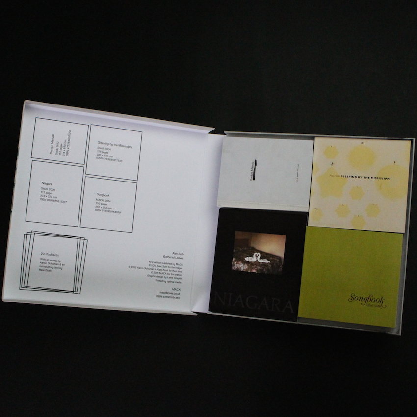 アメリカの写真家アレック・ソスの写真集。トレント・パーク、ジョナス・ベンディクセンらと共にマグナム・フォトの次世代を担う写真家として知られ、自身のレーベル「Little Brown Mushroom」からも意欲的に作品を発表し、現在の写真界をリードする存在として世界的に注目を集めているソス。スティーブン・ショアーらによって確立された原風景を通じて文化・本質を描写する現代アメリカ写真の作風を継承しつつ、ユニークなコンセプトを織り交ぜ、ドキュメンタリーとコンセプチュアルが奏でる独自の世界観を創造しています。本書は、代表作「Sleeping by the Mississippi」「Niagara」「Broken Manual」に加え、最新作「Songbook」の極縮小版写真集がセットになった作品で、さらに写真集に収録されている主要図版のポストカードも付属された豪華版です。詩人ウォルト・ホイットマンの「Song of Myself」からヒントを得たタイトル「Gathered Leaves」は、写真集がソスの考察と概念を表現したもので、ソス自身の物語が本書に集められているという考えに基づいています。