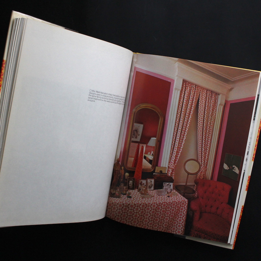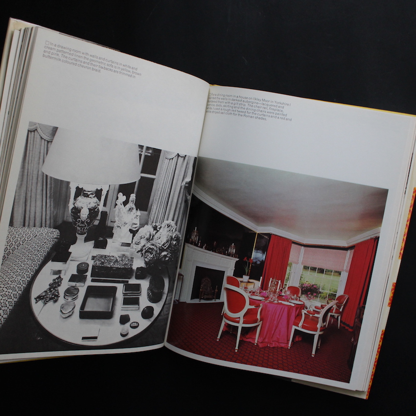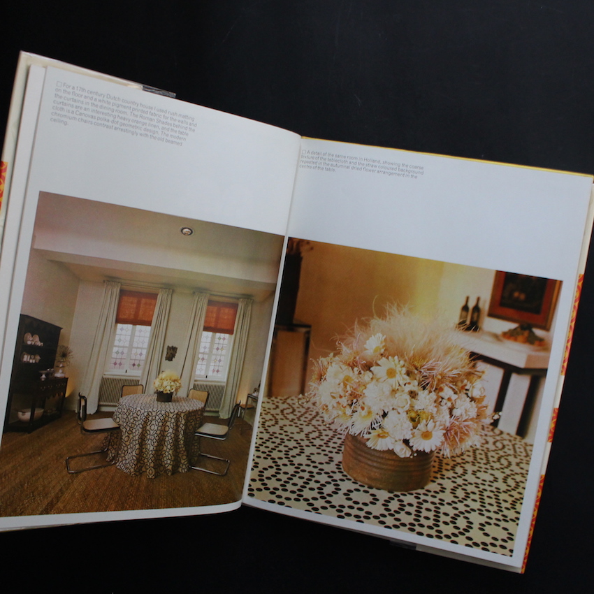 イギリスのインテリアデザイナー、デイヴィッド・ナイチンゲール・ヒックス(1929-1998)の作品集『David Hicks on Decoration-with Fabrics』。伝統的なイングリッシュ・スタイルにモダンな息吹を盛り込んだ気品高きデザインが美しいヒックスの作品。英国皇室の親族にあたるパメラ夫人との結婚後は、英国王室御用達デザイナーともなり、日本ではホテルオークラの客室・スイートルームのデザインも手がけています。また、仕事でも懇意にしていたヴィダル・サスーンやハナエ・モリといった数々の著名アーティストの住居装飾なども手がけており、イギリスのポストウォー・インテリアデザインを語る上で欠かすことのできない人物です。本書は、1971年に刊行された作品集で、カーペット・カーテン・壁紙などのファブリックをベースとしたインテリア装飾を紹介した一冊。代名詞とも言えるユニークな幾何学模様のテキスタイルが連なります。写真のクレジットには、Horstらの名前も。
