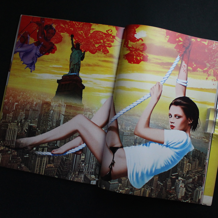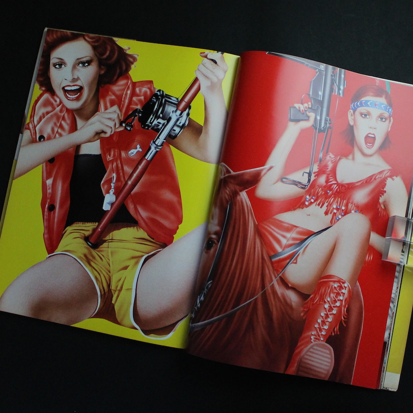 日本の女性アーティストである山口はるみの作品集『Harumi Gals / Parco Views2.(Second Printing, With OBI)』。クリエイティブ・ディレクター小池一子とアート・ディレクター石岡瑛子らと共に、PARCO広告の全盛期を築いた一員の一人であるイラストレーター山口はるみ。学生時代から絵画に興味を持ち、東京芸術大学油画科卒業後に、西武百貨店宣伝部に入社、1969年にはフリーランスとなり、PARCOなどのコマーシャル・イラストで活躍。エア・ブラシの画法を確立し、色鮮やかで華麗時にエロティックな画風から生み出されたハイパーリアルの女性たちは「はるみギャルズ」と称され話題になりました。本書は1978年にPARCO出版より刊行された作品集。横尾忠則が監修を務め、沢渡朔のフォト・パロディや吉行淳之介、和田誠、田中一光、草森紳一、山城隆一、つかこうへい、萩原朔美らのテキストなども収録された、豪華アーティストによる共演。自身がモデルとなったイラストレーションも含めて代表作品100点が掲載されています。第2刷。帯付。