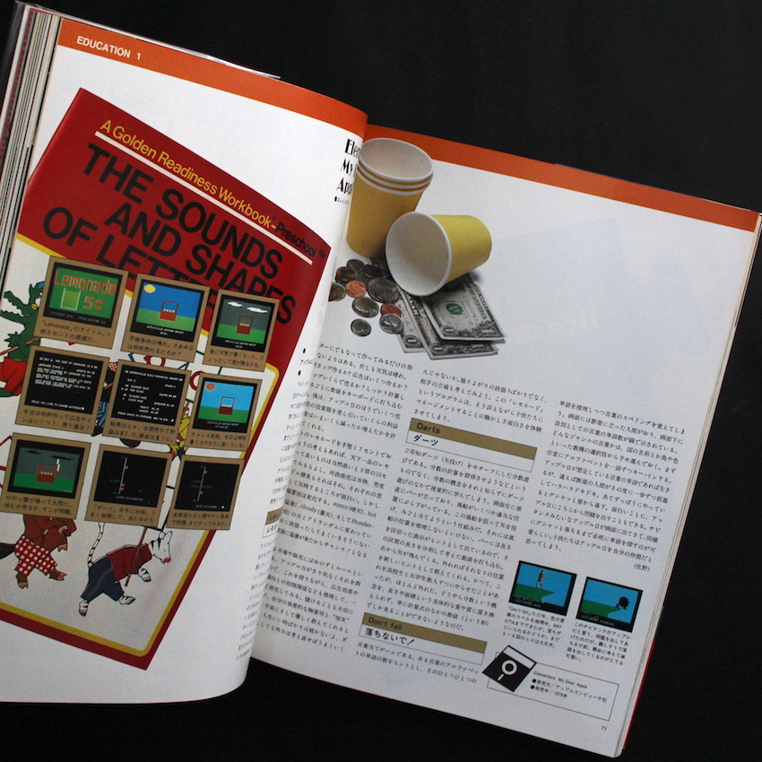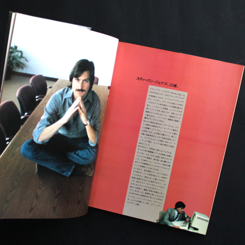 スティーブ・ジョブズとスティーブ・ウォズニアクという「2人のスティーブ」が巻き起こしたアメリカンドリーム「アップル・コンピュータ」。創立は1975年であり、本書は、IPOで公開して世界的な注目を集め始めた時期の1983年に刊行された作品集で、アップルの魅力が多角的な面からまとめられた一冊。ジョブズとウォズニアクという両名にフォーカスしながら、「ソフトウェアの世界(ゲーム・グラフィックス・ミュージック・教育・ビジネス)」「サクセス・ストーリー」「パーソナル・コンピューターとは?」「アップル・フェロー(レジス・マッケンナ、ハービー・ハンコックら)」「アップル・プロダクツ」「アップル資料集」等の章立てにより、図版・イラスト・テキストを交えてユニークにまとめられています。帯付。