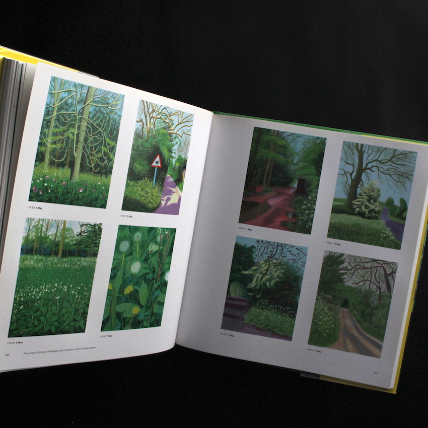 イギリスの画家・現代美術家として高い人気を誇るデイヴィッド・ホックニーの画集・作品集『A Bigger Picture』。同級生のアレン・ジョーンズやキタイらと共にイギリス・ポップ・アートの旗手として活躍した60〜70年代、フォト・コラージュ及びポラロイド・コラージュを制作し写真芸術の新境地を開拓した80年代、そして近年はipadやiphoneによるイラスト制作も行い、新時代のテクノロジーを利用した表現法の追求にも貪欲にチャレンジし続ける真のアーティスト。本書は、2012年にロンドンのロイヤル・アカデミー・オブ・アーツで行われたエキシビジョンを機に刊行された作品集。長年過ごしたカリフォルニアを離れ、地元ヨークシャーに帰郷して以降、作品制作を続けているヨークシャーのランドスケープを中心に、約350点のイラストが収録された大著。チケットの入手も困難で、終始長蛇の列を続け大盛況を呼んだエキシビジョン。キュレーターはお馴染みのマルコ・リヴィングストン。