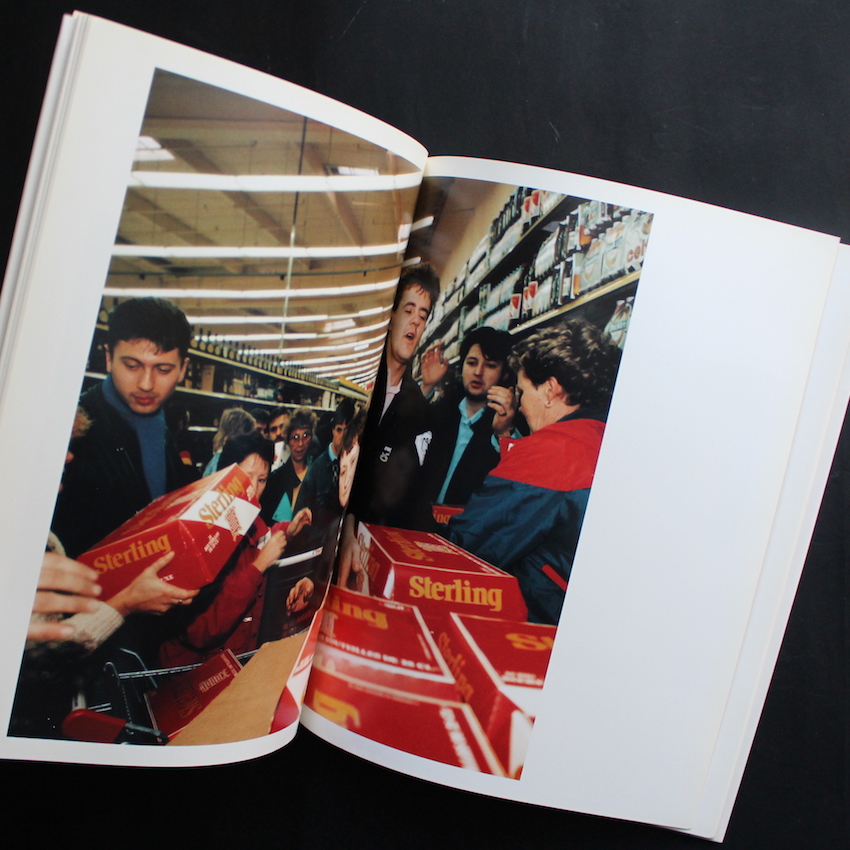 イギリス出身のマグナム・フォトの写真家マーティン・パーの写真集『One Day Trip』。鮮烈なカラーとユニークなコンポジションで、社会・経済・文化の実情を卓越した洞察力で捉え続けるマーティン・パー。1980年代より数十冊の写真集を刊行、同時に10000万冊を超える写真集コレクターとしても知られ、全世界の有名・無名の写真家及びその作品を、文献を通して紹介し続ける写真史家としても著名であります。本書は、サッチャー政権下における物価や税金の上昇で、トイレットペーパーなどの紙製品やアルコールなどの飲料が高騰したことにより、英国人がフランスに日帰り旅行をして、それらの製品を買い込んで、フェリーやバスで帰国するという「One Day Trip」の模様をカメラに収めた一冊。自国の政治・経済を皮肉ったマーティン・パーらしい一冊です。
