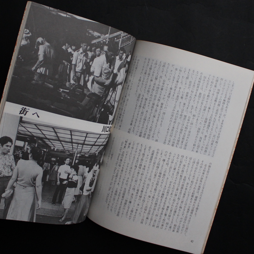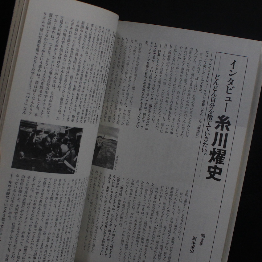 本書は、1980年前後に大阪で刊行されていた「カルチャー同人誌」で、占星術師、大学教授、映画監督、写真家など様々なジャンルの人間の混成によって作成されていたようで、こちらは1979年刊行の創刊号と82年刊行の第2号ですが、その後の発刊の詳細は不明。写真家では、1960年代より大阪を拠点に活躍して、音楽、演劇、演芸など他ジャンルのアーティストたちと交流を図り、モリスフォーム・プレイガイドジャーナル関連でも度々登場する糸川燿史が、「村祭り」と題した写真とテキストを発表しています。その他、姫路を拠点にした『PHOTO STREET』のメンバーでもあった川口和之(川口は編集・制作も担当)、さらには70年代から活躍して、作品集『スナップショット / Snapshot』で知られる興松良昌は、「視線-街角」を掲載しています。尚、第1号は図版が多く収録されていますが、第2号はテキストがメインの構成となっています。70-80年代に登場した数々の同人誌の中でも異色の一冊です。