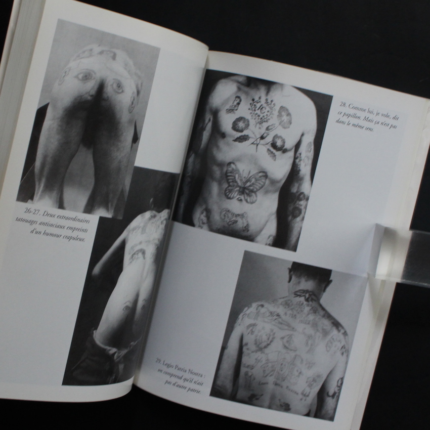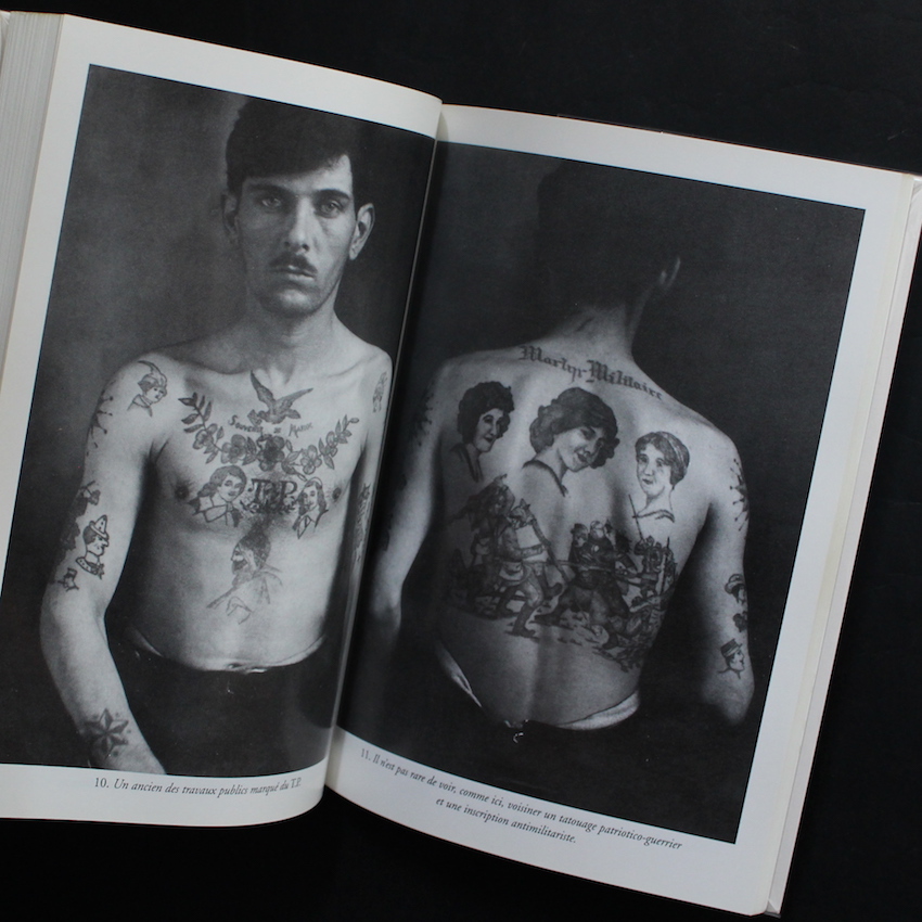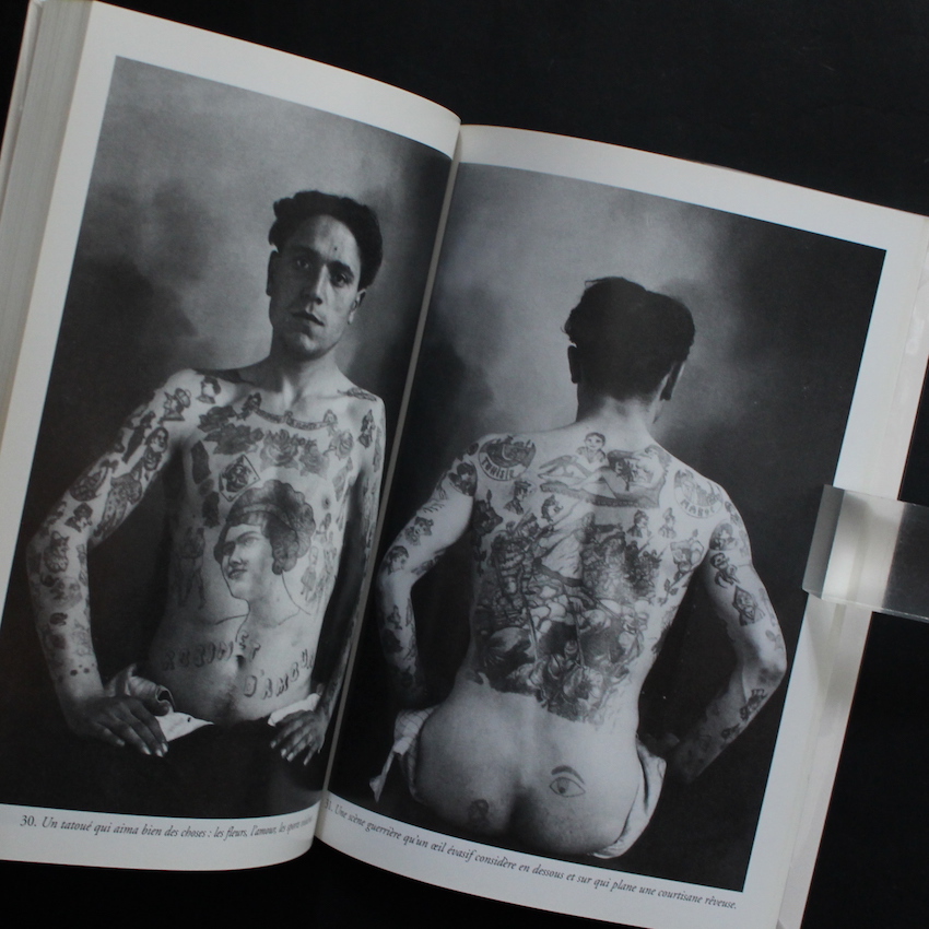 本書は、1950年にフランスで刊行され、戦後まもなく発表された「刺青」に関する貴重な歴史的名著の1999年復刻新版『Les Tatouages du Milieu』。テキスト・ベースのタトゥー本は、当時でもすでにいくつかの刊行物があったそうですが、イラストレーション・ドローイング、さらには写真図版も多数用いて、入れ墨の慣習、ドローイングやデザインの意味、さらには背景にある反社会的精神などが、詳細に記載された研究書のようなものは当時では貴重なものでした(テキストはフランス語)。作家であるRobert Giraudは、詩人・コラムニストでダウンタウンのカルチャー研究に秀でた作家で、ロベール・ドアノーの友人でもあったGiraudが、ドアノーを下町へと導いたとも言われています。また、本書に収録された80のタトゥーのデッサンは、Jacques Delarueによるものであり、さらには83の写真図版のうち、11はドアノー撮影によるものであることも見逃せません。ソフトカバー。