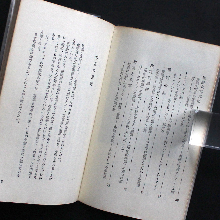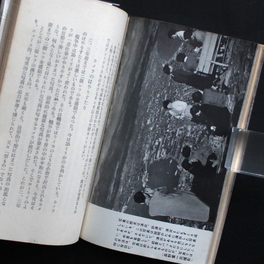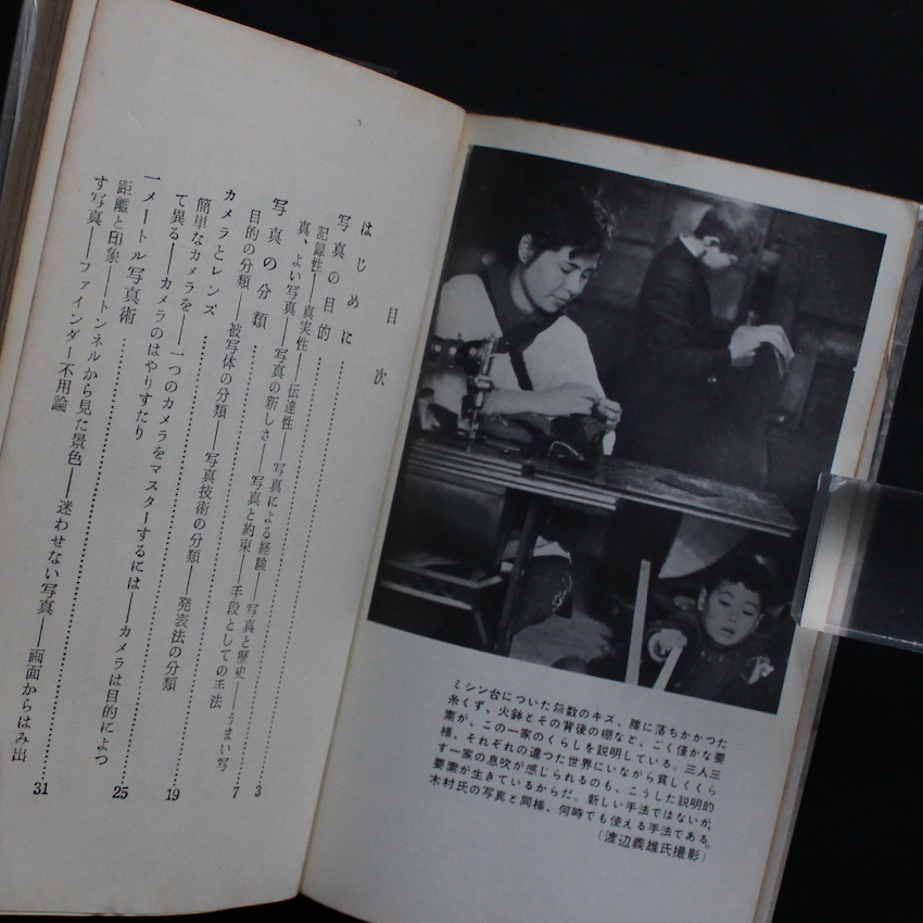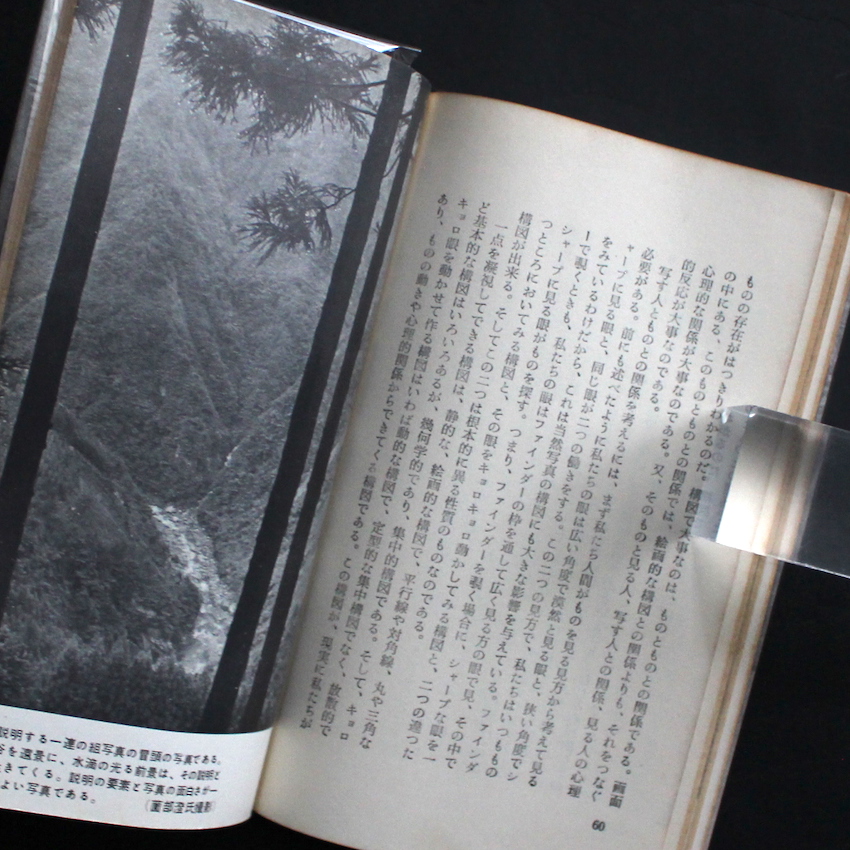 戦前から戦後にかけて写真家・写真編集者・写真評論家として活躍した名取洋之助(1910-1962)の作品集『新しい写真術 フォト・ライブラリー 3』。1956年に刊行された名取による歴史的名著『組写真の作り方 フォト・ライブラリー 7』と同じシリーズで、1955年に刊行されたものです。「写真の目的」「写真の分類」「構図の話」「決定的瞬間」「写真と文章」など、大変読みやすい基礎的内容の記述がベースながら、従来の記録写真によらない、新しい写真の撮り方・読み方等について言及されています。写真家は、目的や主義・主張をしっかり持たねばならず、「決定的瞬間」とは構図やバランス上の問題ではなく、自身の最も目的に合った瞬間であると述べられています。一方、他誌で奈良原一高は、目的意識が強すぎると偶然の産物を捉えるチャンスを見失うケースもある、と述べたりもしています。写真とは奥深くゴールのない大変難しいものであり、一方で楽しく日常的なものでもあり続けてほしいものです。