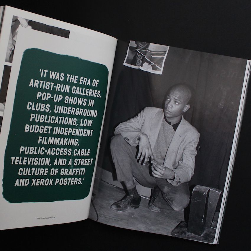 アメリカ・ブルックリン出身のグラフィック・アーティストであるジャン=ミシェル・バスキアによる作品集『Basquiat: The Artist And His New York Scene』。27歳でドラッグによる急性中毒でこの世を去った伝説の画家バスキア。スタジオを持たずどこででもアートを表現できるペインターであり、アンディ・ウォーホルとの親交も深くコラボレーションも制作。80年代のダウンタウンのアートシーンの中心的存在でもありました。2019年には東京の森美術館で日本初となる本格的なエキシビジョンも行われて話題になりましたが、こちらは2019年にオランダのヘールレンで行われた個展時に刊行されたカタログ。写真集のような体裁で、バスキアのめずらしいポートレートから、同時代のアーティストの作品、ダウンタウンのグラフィティやパーティーシーンなど、バスキアと当時のバックグラウンドを重ね合わせて、美しいデザイン性に富んだアートブックとしてまとめられた一冊です。