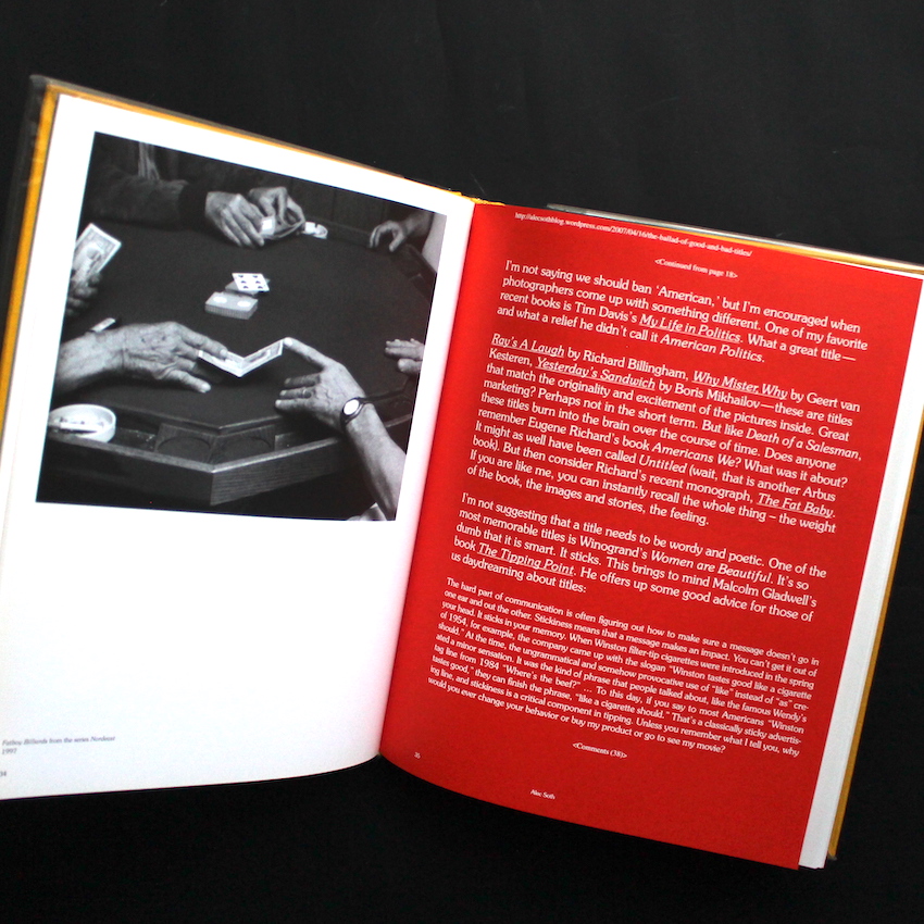 2010年にミネアポリスのウォーカーアートセンターで開催されたマグナム・フォトの写真家アレック・ソス初の本格的回顧展に際し刊行された写真集・カタログ『From Here To There : Alec Soth's America(With Booklet)』。ソス初期の90年代から現在までの主要作品及び未発表作品が収録されています。展覧会カタログですが非常に凝った装幀になっており、ユニークにデザインされた目次表紙、所々に用紙形式を変えてソスのネットブログを差込、巻末には48ページからなる小冊子写真集「The Loneliest Man in Missouri」も添付しています。インタビューやコンセプトリストなども掲載されており、非常に興味深い一冊です。