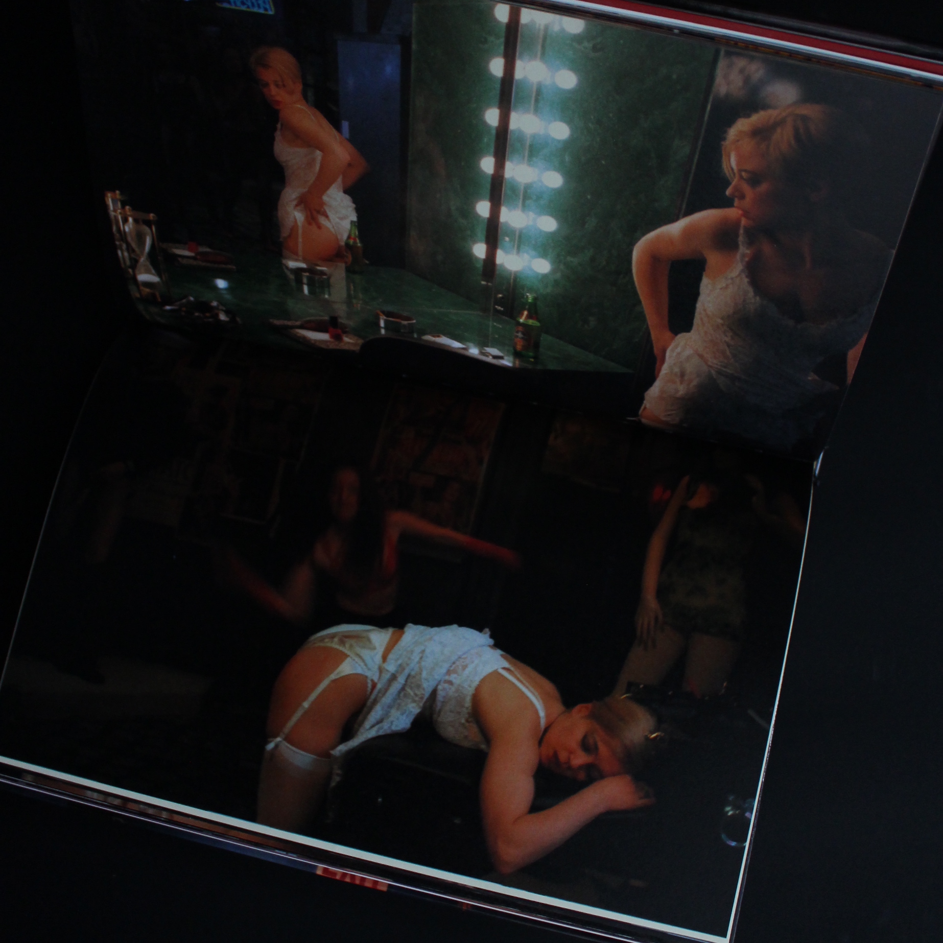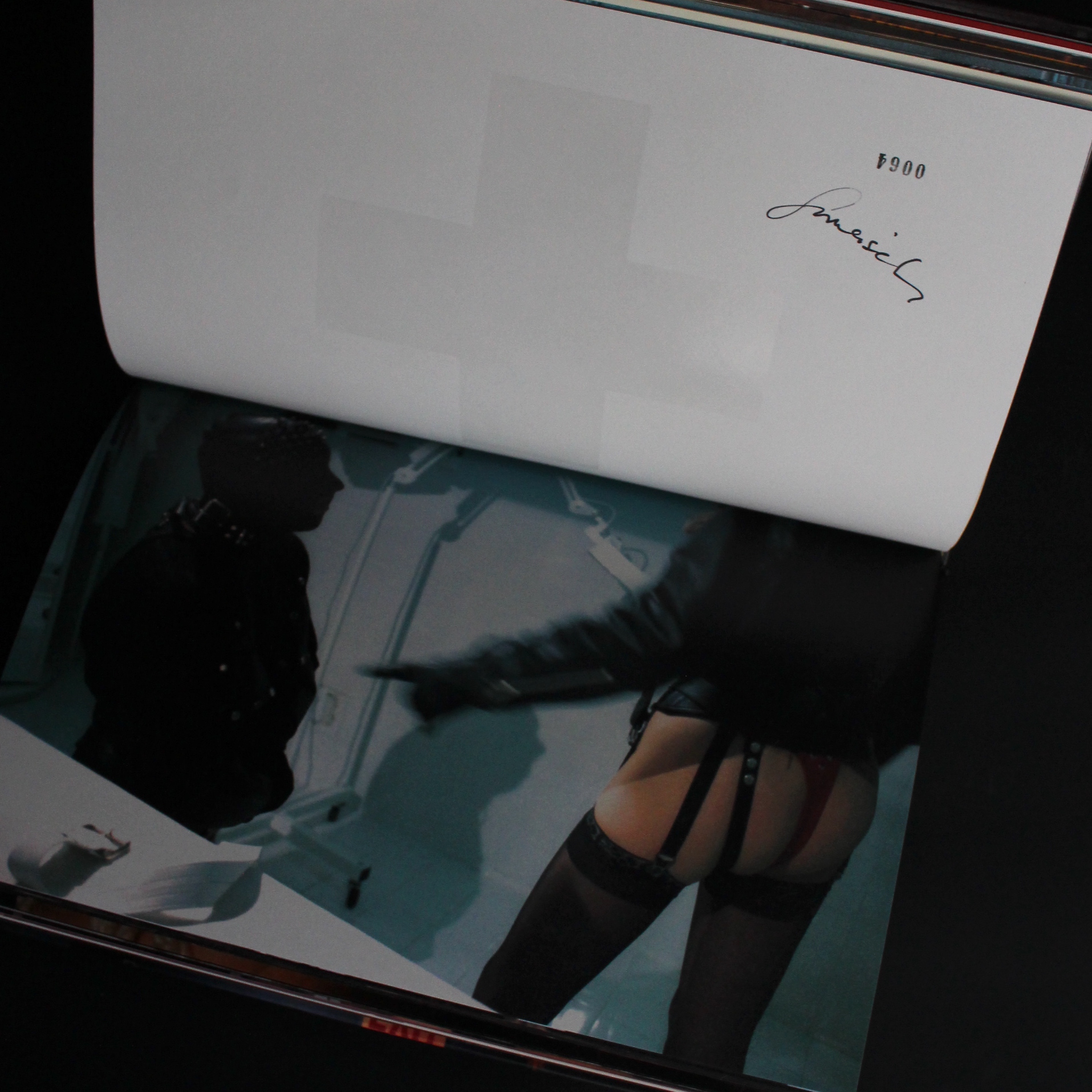 アメリカ・ボルチモア出身のマグナム・フォトの女性写真家スーザン・メイゼラスの写真集『Pandora's Box(Limited Editions, Signed)』。メイゼラスはハーバード大学で修士号を取得し、映像フィルムを用いた教材研究を行っていましたが、20代半ばに写真家に転向、76年にアメリカ南部のストリップ団をドキュメントした「Carnival Strippers」を発表、その後は主にニカラグアや中南米の政治問題を取り上げたフォト・ジャーナリストとして活動し、数々の賞を受賞しています。本書は、謎に包まれたニューヨーク・マンハッタンの超高級SMクラブをドキュメントした写真集。テーマは「vacations from reality」。顧客情報(女性含む)、パフォーマンス・シーン、舞台裏まで詳細に記録、未知でディープな世界の扉が開かれています。ページ内にはクラブを連想させるラバー、カラー・フィルムを織り交ぜており、装幀もユニーク。本書は150部限定の特装版で、スリップケース付・エディションナンバー入り及び写真家サイン入り。