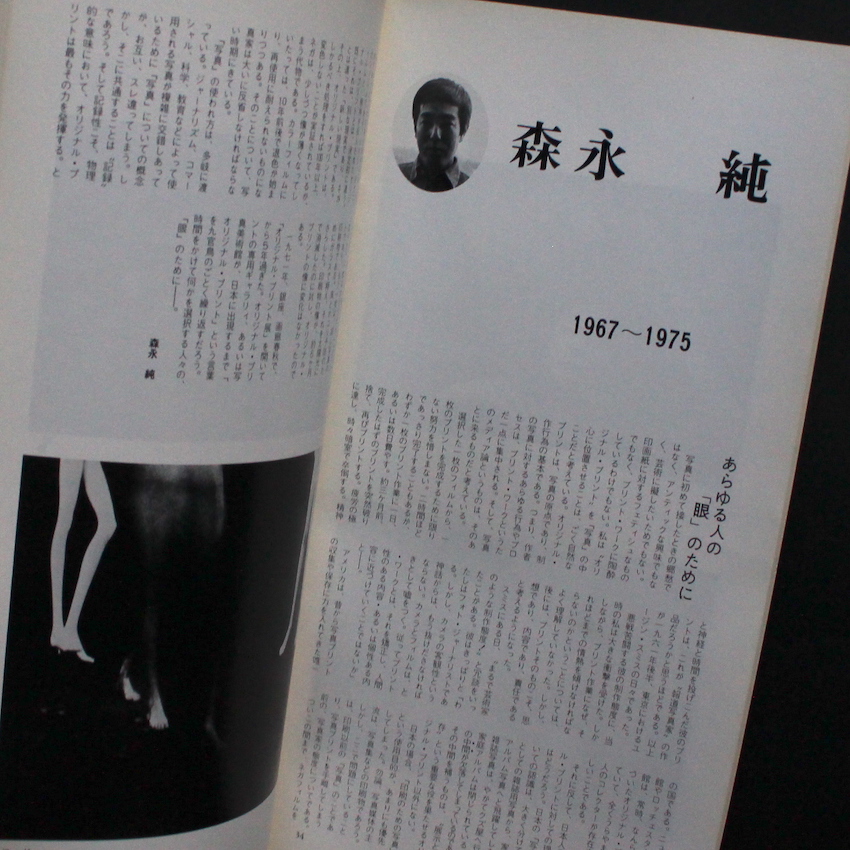東松照明が主体となって、細江英公、深瀬昌久、横須賀功光、荒木経惟、森山大道らが各自教室を持って写真を教える「寺子屋式・写真塾」であった「ワークショップ写真学校」。同時に創刊から計8号まで継続的に出版した写真雑誌「季刊ワークショップ」。本書はその第6号になりますが、1976年2月に資生堂の「ザ・ギンザ」で行われたエキシビジョン「写真売ります -12人の写真家による自選作品展-」のカタログを兼ねた内容になっており、上述したワークショップの講師6名のほか、奈良原一高、石元泰博、川田喜久治、沢渡朔、森永純、立木義浩の合計12名の紹介(テキスト)と出品作(イメージ)が掲載されています。その他、巻末の細江と奈良原による対談「写真のスタンダード」も読み応えのある一冊です。