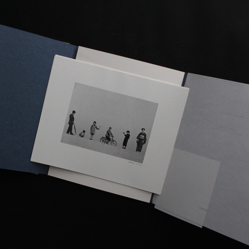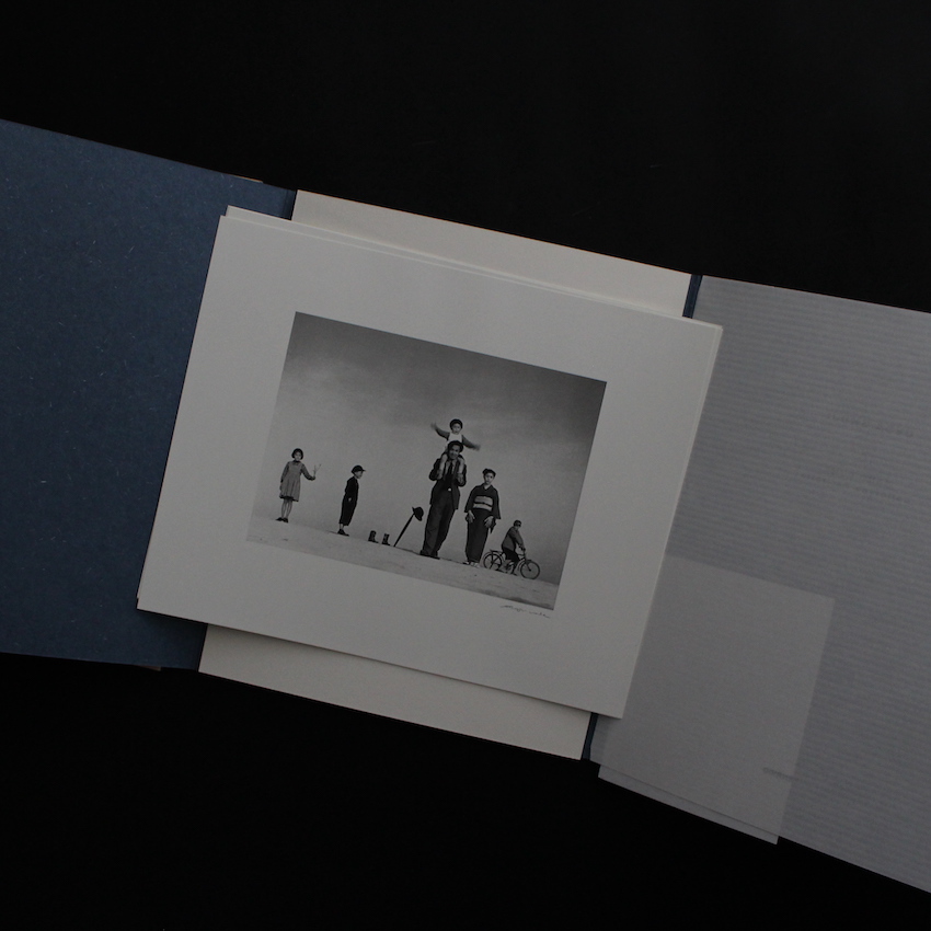 戦後日本を代表する写真家のひとりである植田正治の写真集『砂丘・子供の四季 / Sand Dunes・Seasons of the Children』。1913年鳥取県境港に生まれ、17歳で写真を始め、2000年に逝去されるまで、約70年もの間写真を撮り続けた巨匠・植田正治。疎開のどさくさで、戦前に撮りためたネガを失い、戦後はカメラ誌や個展で作品を発表し高い評価を得ていたものの、あくまで知る人ぞ知る存在でありました。その植田が全国区そして世界へと羽ばたいていくきっかけは70年代にあり、カメラ毎日の山岸章二が編集を担った『童暦 / Children the Year Around』(1971)、そして27の写真家が選出された朝日ソノラマ写真選書シリーズの『砂丘・子供の四季 / Sand Dunes・Seasons of the Children』の頃からでした。こちらは、京都の便利堂が刊行するコロタイプ・ポートフォリオシリーズで、代表作6枚が収録された作品集です。額装にもぴったりです。
