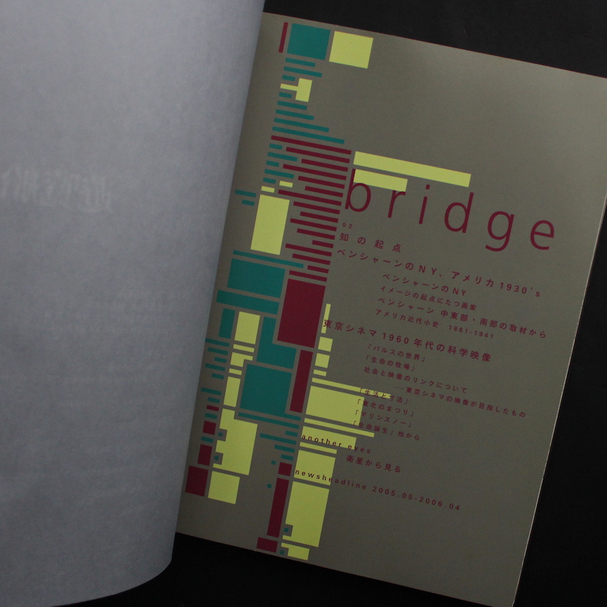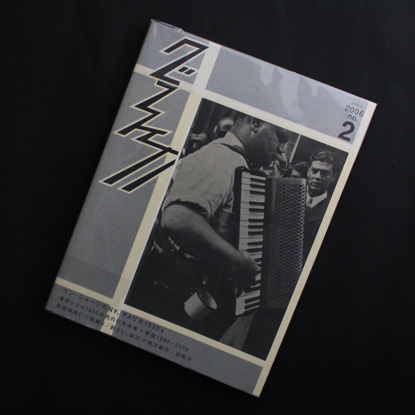 毎日新聞社写真部の出身で、ガレリアQなどの運営にも携わった写真家・伊藤愼一が立ち上げた写真マガジン『グラフィカ 2号 bridge @Q 遊覧船 2006 no.2』。写真マニアにはたまらないマニアックな視点、さらには丹野清志、中居裕恭、藤田進、尾仲浩二らによる「メモリア グラフィカ」シリーズも人気を読んだめずらしい写真雑誌。Bridge、@Q、遊覧船という3つの雑誌がひとつになったような編集もユニーク。第2号の本誌では、アメリカの写真家で画家としても著名な「ベン・シャーン」に焦点を当てた特集から、「東京シネマ 1960年代の科学映像」、藤田進・伊藤元斉・牟田義仁・松本馨らの撮影による「新宿」のスナップなどなど、収録図版から評論・テキストまで大変興味深い作品集です。