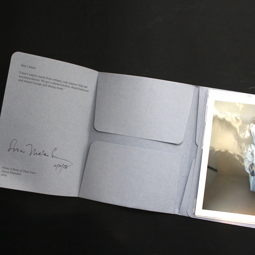 アメリカ・ボルチモア出身のマグナム・フォトの女性写真家スーザン・メイゼラスの写真集『A View of a Room(With Signed 6×4 Print)』。アウトサイダーや貧困層、さらにはニカラグアを代表とする(中)南米への取材を通じて、数々のドキュメンタリーを紡いできたメイゼラス。マリー・エレン・マークらと同様に、女性的な視点で、その事実をストーリーとして写真・映像を通じて描写するスタイルの先導者として、これまでに『Carnival Stripper』『Nicaragua』『Kurdistan: In the Shadow of History』などの名作を発表してきたほか、ロバート・キャパ賞の授与や、メンバーでもあるマグナム・フォトの理事長なども歴任しています。こちらはイギリスのブラックカントリーに招待されたメイゼラスが、訪れた避難所の部屋を撮影し、その写真を見た女性たちの証言やアートワークをそのまま一冊の本としてまとめたもので、写真プリント1枚、及び証言及びアートワークが収録された別冊が付属します。写真家サイン入り。