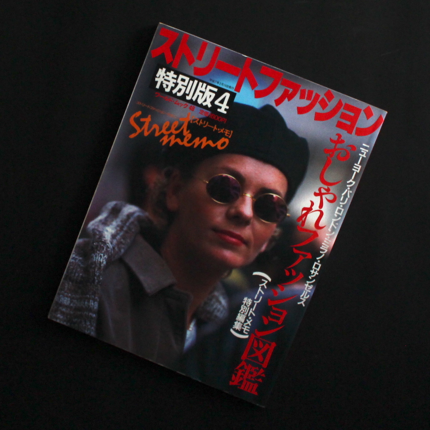 ワールドフォトプレス社発行のワールド・ムック本48号『ストリートファッション 特別版 4 おしゃれファッション図鑑』。ワールドフォトプレスの代表者・今井今朝春は、フォト・ジャーナリスト出身であり、同社が刊行する雑誌は、物撮りに対して細かなこだわりと確かなクオリティーがありました。本書は、パリ・ニューヨーク・ミラノ・ロンドン・ロサンゼルスといったトレンドの聖地で撮影されたスナップを通じて、ファッション・アイテム・カラー・コーディネートなど、当時のファッション・トレンドを写真図版を通して雑誌にまとめた一冊。今の時代でも色あせない魅力的なファッションが目白押しです。