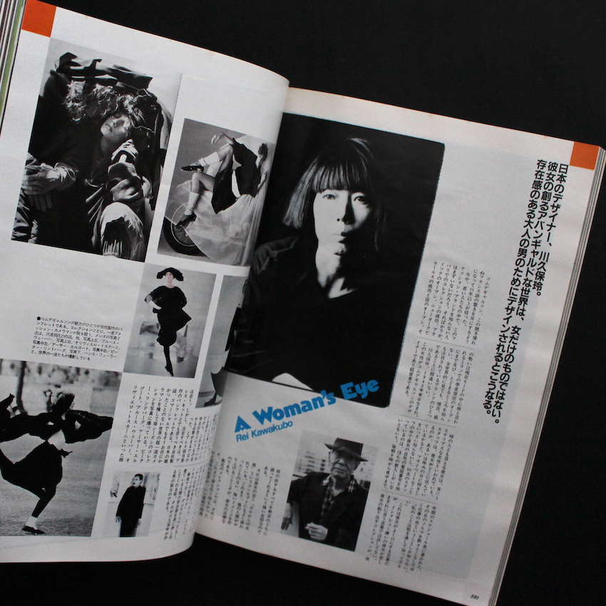 男性のためのライフスタイル情報誌として創刊された『BRUTUS』の1983年秋増刊号「Stylebook Special '84 図鑑・男のスタイルブック」。当時の編集長は『POPEYE』などの創刊に携わった石川次郎、また編集には都築響一が名を連ね、アートディレクションは、POPEYEさらには「an an」も担当した堀内誠一が担当しています。本号は500ページ近いボリュームで、かなりの特集が組まれておりますが、カルバン・クラインのコマーシャルで人気が出始めたブルース・ウェバーのファッション写真や、マーガレット・ハウエル、川久保玲ら女性デザイナーが創り出すメンズファッションの紹介(ちなみに川久保のコメント「オムは、私が男だったら、というコンセプトの結果です」)など、ユニークなコンテンツが、充実した図版・テキストと共に紹介されています。