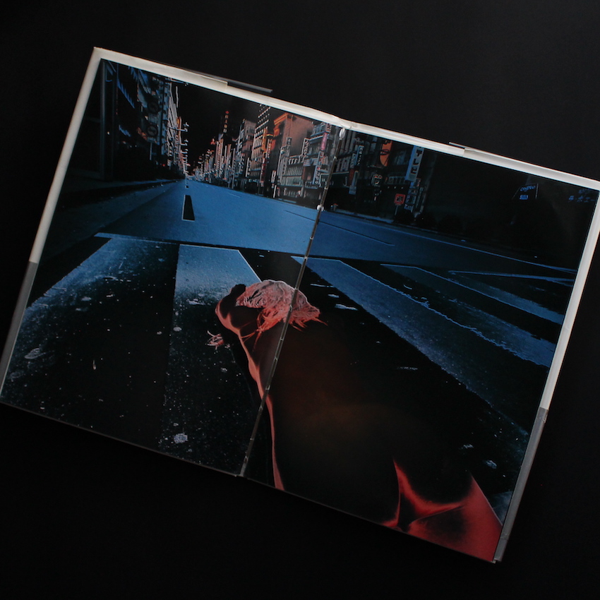 日本を代表する写真家・篠山紀信の作品集『Tokyo Nude』。1970年代から80年代にかけて、荒木経惟は、末井昭とタッグを組んで『ウィークエンドスーパー』や、爆発的人気を誇った『写真時代』などで話題をさらっていましたが、一方の篠山は、モデル・アイドル・女優らをモチーフにしたグラビアシリーズ『激写』がヒットとなり、篠山を中心とした写真雑誌『写楽』などが生まれました。また、コマーシャル活動と並行して取り組んだ、篠山の80年代の代表作と言えば「シノラマ」。その名の通り篠山の名と「パノラマ」を掛け合わせた造語ですが、複数のカメラを駆使して、複眼的に対象を捉える技法です。激変を遂げる80年代の(大)都市を写すには格好な技法であり、篠山はニューヨークや東京を舞台にした作品を発表してきました。こちらは「東京版シノラマ」ともいうべき、都市の風景とおんな(ヌード)を混在させ、東京という街を裸にした『Tokyo Nude』です。