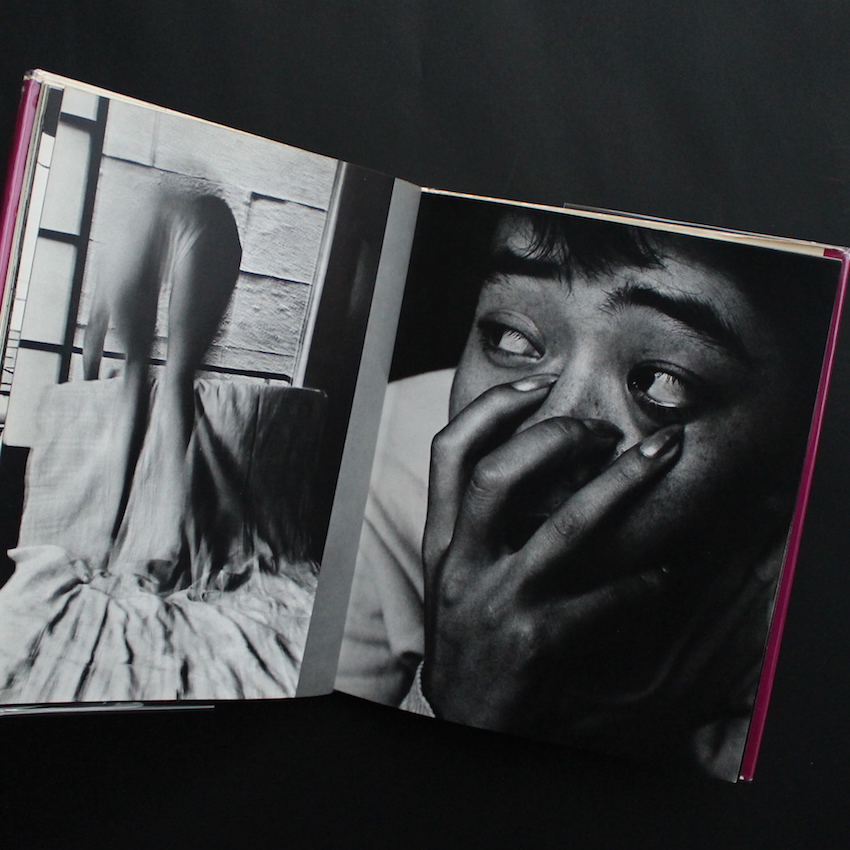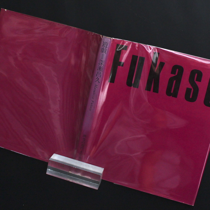日本の写真家・深瀬昌久の写真集『遊戯 / Homo Ludence』。「妻」「父」「家族」「猫」「鴉」といった身近な題材を通して、「人間」「写真家」としての自身を生涯見つめ続けた深瀬昌久。日本大学芸術学部を卒業後、コマーシャルの仕事から出発し、第一宣伝社や河出書房に務めた後フリーに。以後「自分が」「写真を撮る」という意味を確かめるように、自分自身や身内、身の回りにレンズを向け始め、以後代表作となる『洋子 / Yohko』『サスケ』『鴉 / Ravens』『父の記憶 / Memories of Father』を発表するに至ります。本書は、輝くべき1st写真集で中央公論社より刊行された『映像の現代シリーズ(全10巻)』の第4号。芝浦の屠殺場を描写した「屠」、妻・洋子との「寿」、性描写の「戯」、愛した女性の記憶「冥」、洋子と洋子の母の「母」、家族と謡曲・仕舞い「譜」の6部構成。ビニールカバー及び帯欠。