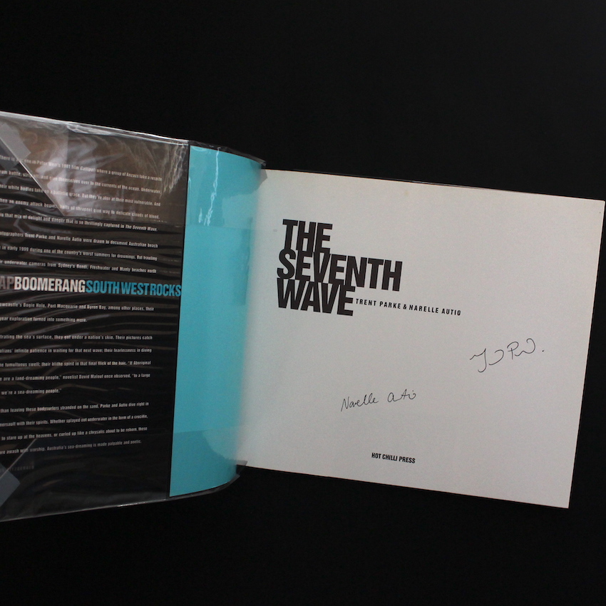 オーストラリアの写真家トレント・パークの写真集『The Seventh Wave(Signed)』。沿岸部ニューカッスルに生まれ、新聞社の専属写真家及びスポーツ写真家として働いた後フリーに。90,000kmを横断し変わりゆくオーストラリアの文化・人々の姿を描写した『Minutes to Midnight』は2003年ユージン・スミス賞受賞。2015年に発表した『The Black Rose』も大反響を呼び、現在のアート写真界を牽引する写真家です。自分が生まれ暮らしてきたオーストラリアという地を愛し、自国の生活や文化を見つめ、処女作・出世作となった『Dream / Life』では「都市」を、『Minutes to Midnight』では「奥地」を捉えてきたパークですが、2作目となった本書では「海 / ビーチ」を舞台に撮影されています。水上で、水面で、そして水中で戯れる人々のビーチライフを描写。『Dream / Life』の翌年に発表されたこともあり、前作からの流れを継いだ美しいBlack&Whiteな世界。パートナーで現在の妻であるNarelle Autioとの共作。写真家サイン入り。