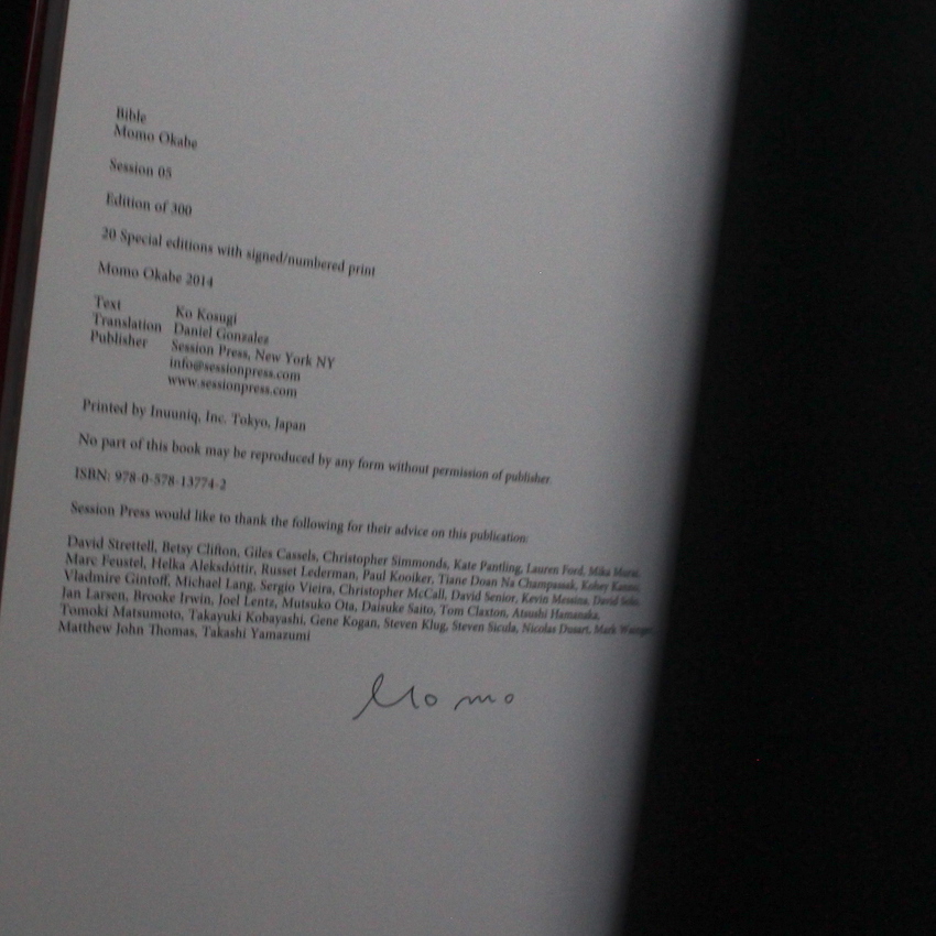日本の女性写真家である岡部桃の写真集『バイブル / Bible(Signed)』。1981年生まれの岡部は、現在世界的に最も注目を集める若手写真家のひとり。キャノン写真新世紀優秀賞(荒木経惟選)やエプソン・コンテスト審査員賞(佐内正史選)等の受賞歴を有し、2012年〜13年に立て続けに写真集を発表。そして55部限定ながら世界の写真関係者にその名を轟かせた13年刊行の作品『Dildo』に続くSession Pressからの第二弾が本書。性転換の手術を受けた岡部の恋人や友人たち、そして写真家自身の、美しく、時につらく、重たく、悲しい事実・心情を綴ったパーソナル・メモリー。伝えたい気持ち・表される心情は誠実でストレートながらも、自他の複雑な事実や気持ちが重層的であるところを、ポートレート・ヌード・ランドスケープを交錯させながら、多層的な光やカラーで見事に表現しています。女性及び写真家としてのあまりにも繊細な心と、一方でゆるぎない覚悟さえも感じさせるような素晴らしい一冊。300部限定。