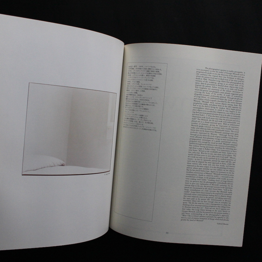 フランスを代表する写真家クロード・ノリがディレクションを担った写真雑誌『カメラ・インターナショナル』の日本語版1992年秋・通巻7号。ご存知の通り、カバー写真は、現在世界的に再評価が進むイタリアの写真家、ルイジ・ギッリによるジョルジョ・モランディのアトリエ写真。ノリは、ギッリの親友であり同士でもありました。現在では貴重なギッリによるモランディ図版がカバー写真以外でも8図版収録されています。その他、同じく近年再評価が進む近代スカンジナビア写真の父とも言われたスウェーデンのクリステル・ストロームホルム、さらには伝説のアートディレクター、アレクセイ・ブロドヴィッチに師事しながら30歳に急逝したイギリスのトニー・レイ・ジョーンズらが紹介されています。
