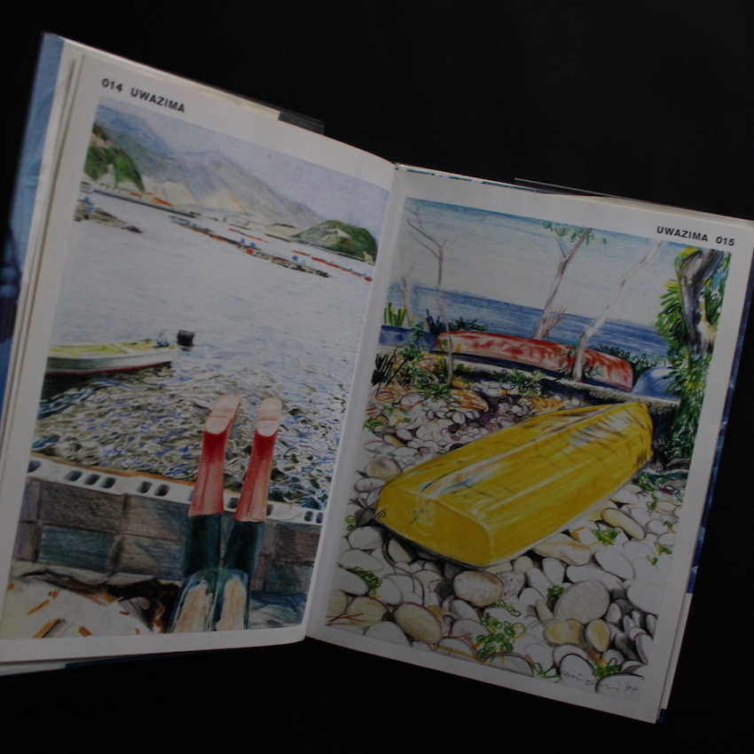 日本のアーティスト、大竹伸朗の作品集『大竹伸朗日本景 / Zyapanorama(Signed)』。1955年生まれ。武蔵野美術大学造形学部油絵学科を卒業し、80年代初頭より、絵画を中心に、印刷、音、写真や映像などの多彩な表現を展開し、その活動は、現代美術の世界だけでなく、文字やデザインなど、幅広いジャンルに影響を与えてきた大竹伸朗。1988年に愛媛県宇和島へ移住し活動を続け、2006年に東京都現代美術館で行われた回顧展『大竹伸朗 全景 1955-2006』や、2009年に香川県直島にオープンした公共浴場の《直島銭湯「I♥湯」》、2013年に猪熊弦一郎現代美術館で行われた個展「大竹伸朗展 ニューニュー」など、その活躍は現在も続きます。本書は、1995年5月から翌96年11月までに、今はなき文芸雑誌『海燕』の仕事で、「日本」をテーマに全国に赴いて描いた創作した作品を中心に収録した一冊。巨大なパチンコ店やラブホテル、ドラッグストアやファーストフード、コンビニなどなど、身近な題材を大竹風にポップにまとめたイメージが連なります。