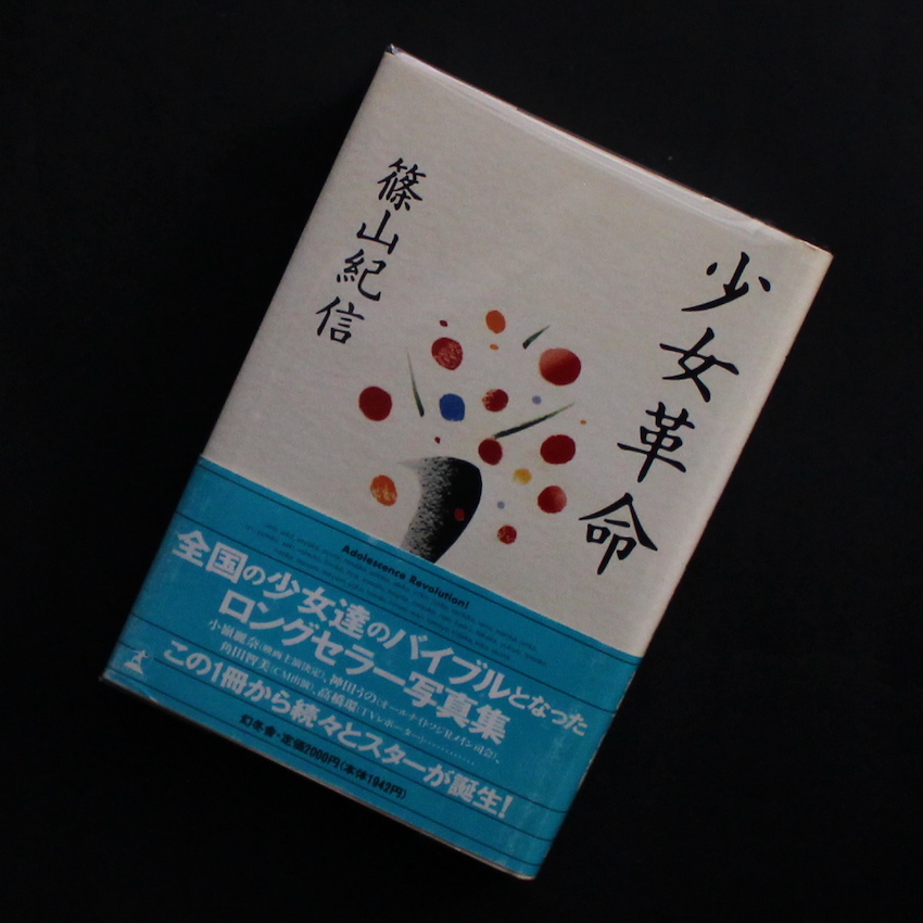 戦後日本を代表する写真家のひとりである篠山紀信の作品集『少女革命』。コマーシャル写真においては圧倒的な知名度とキャリアを有するものの、荒木や森山らが歩んだ写真の道とは距離を置き、「日本の写真家シリーズ」「ソノラマ写真選書シリーズ」「映像の現代シリーズ」といった、戦後の代表的な写真家が名を連ねる作品集には軒並み不参加。しかし、そのセンスと確かな技術は、荒木経惟はじめ誰もが認めるところです。本書は、「チャイドル」などというネーミングでも有名な10代〜20代のピュアな少女たちのポートレートでまとめられた一冊です。帯付。第2刷。