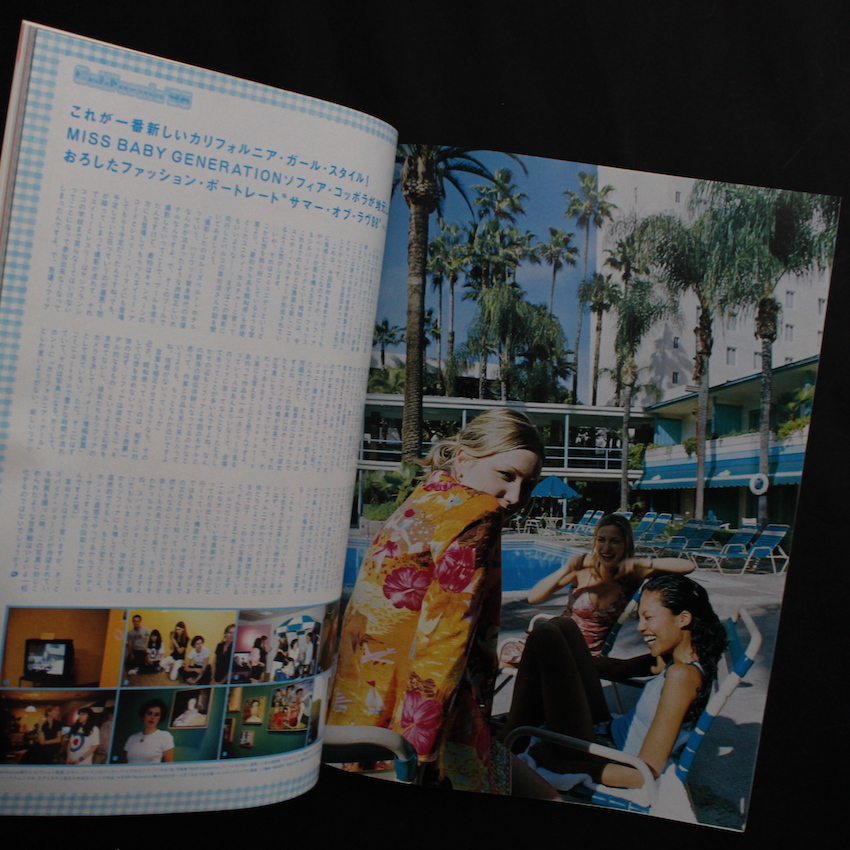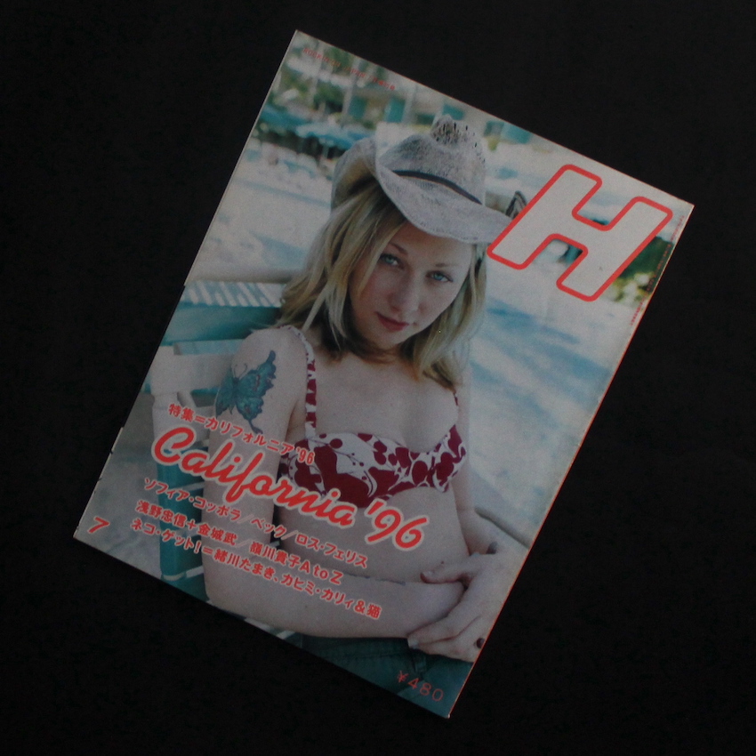 本誌は、ロッキング・オンから発行されていた雑誌『H』の1996年7月号。現在も不定期ながら継続して刊行されているカルチャー誌で、当初は(現在も?)『Cut』の姉妹誌という位置づけのものだったようですが、音楽を機軸にファッション、アート、映画、芸能などを織り交ぜた独自の誌面が魅力的です。本号は「カリフォルニア'96」がテーマ。アメリカ西海岸を席巻した「ヒッピー・ムーヴメント」から30年近い年月が経過し、現在はフラワー・チルドレンを中心としたユース・カルチャーが主流に。そんなカリフォルニアのガールズ・カルチャーを、若かりしたソフィア・コッポラが撮り下ろした貴重なファッション・ポートレートが収録されているところが魅力的な一冊です。