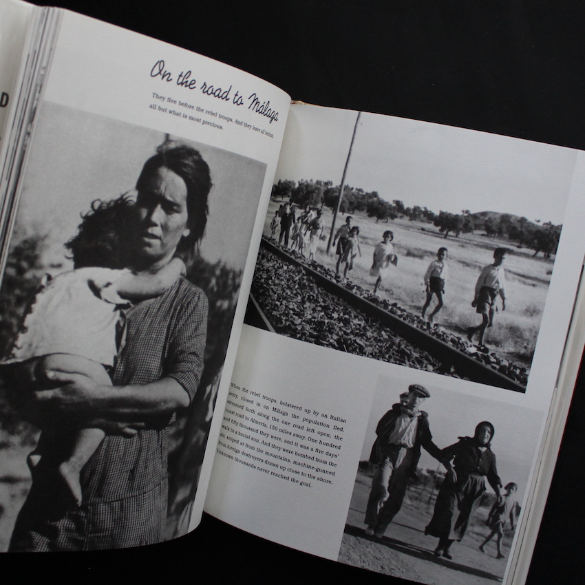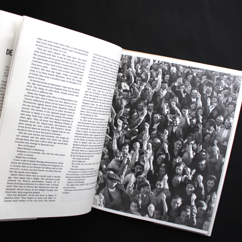 20世紀を代表するフォトジャーナリストで戦場カメラマン、ロバート・キャパ(1913-1954)の作品集。本名はアンドレ・フリードマン。ハンガリー出身のユダヤ家系に生まれたフリードマンは、国内の政治的弾圧やナチスの台頭が逃れ、パリに移り、公私のパートナーとなるゲルダ・タローとともに活動を始めます。そして、本書のカバーにもなっている「崩れ落ちる兵士」が、スペイン内戦時に撮影されて、『LIFE』などでもカバーを飾り、キャパの名は一気に世界に知れ渡ったのです。しかし、同時にキャパはこのスペインでの取材中に、ゲルダを戦地で失ってしまいました。まだ26歳の若さでした。そんなゲルダのために捧げられた本書は、没後の翌年1938年に刊行され、アンドレ・ケルテスがその図版のレイアウトを担当しています。そして、2020年に念願の復刻版が刊行されましたが、ネガなどから新たにスキャンが施されたことで、本書内のイメージは、キャパそしてゲルダのみならず、後のマグナム・フォトの創設メンバーであるDavid Seymour(通称Chim)によって撮影された図版も、相当数あることが新たに判明されました。キャパについての考察は、沢木耕太郎による『キャパの十字架』『キャパへの追走』など、様々な意見もありますが、いずれにしても、戦場写真集としては、屈指の名著と言える一冊です。