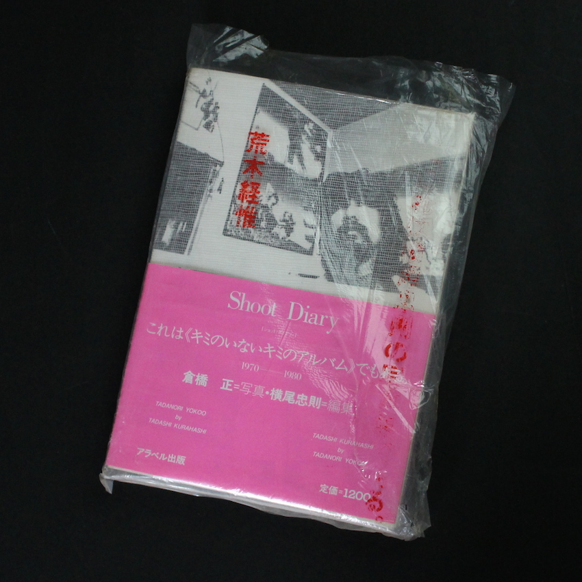 日本の写真家倉橋正による日本を代表するデザイナー横尾忠則の写真集「Shoot Diary -ショット・ダイアリィ-」。「この写真集はわれわれ二人の10年間の旅の記録である」という帯記述の通り、本書は1971年から10年間倉橋正が横尾忠則の公私活動に密着したプライベート・ドキュメンタリーで、本書の編集も横尾忠則自身が手掛けています。以下コピーライター糸井重里によるコメント「横尾忠則は、ぼくにとって『年表の目盛』のよーな人である。この本をめくっていると、あらためて、時代の流れの要所要所には必ずYOKOOのしるしが残されていることに気付く。ぼくらは、『横尾忠則がソレをしていた頃、アレをしていた』といったかたちで自分を確かめることができる。だから、横尾忠則の個人的アルバムともいえるこの写真集は<ぼくの映っていないぼくのアルバム>でもあるわけだ。つまり、これは<キミのいないキミのアルバム>でもある」。