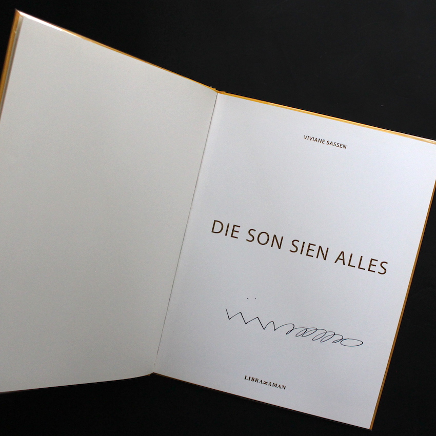 オランダの女性写真家ヴィヴィアン・サッセンの写真集『Die Son Sien Alles(Second Edition, Signed)』。現在世界的に最も注目を集めているファッション・コマーシャル写真家ヴィヴィアン・サッセン。「i-d」「Purple」で頭角を表し、これまでにルイ・ヴィトン、ミュウミュウ、ボッテガ・ヴェネタ、ステラ・マッカートニー、フィリップ・リム、パルコ、資生堂等錚々たる企業・ブランドのイメージ・ヴィジュアルを手がけています。父親の仕事の関係で幼少時代にケニアで暮らした経験を持つことから「アフリカ」がサッセン作品のルーツとなっており、コンセプチュアルな作風、ユニークな演出や実験表現、フォルム・カラーリングの独自性等クリエイティビティに富んだ作品の数々に魅了されます。本書は南アフリカ・ケープタウン黒人居住区域の住居のインテリアで構成されており、チラシやポスターで彩られたアブストラクトなウォールと、そこで暮す人々のコントラストが当地特有のカルチャーを描写しています。第2版・700部限定。写真家サイン入り。