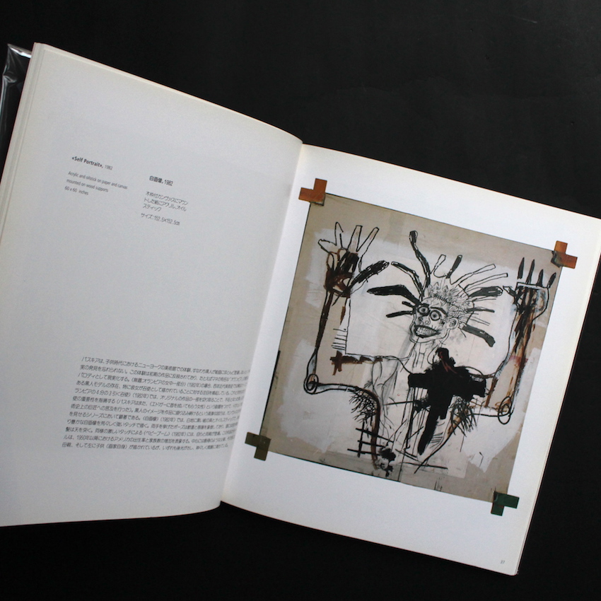 アメリカ・ブルックリン出身のグラフィック・アーティストであるジャン=ミシェル・バスキアによる作品集『Jean Michel Basquiat バスキア展(With Leaflet)』。27歳でドラッグによる急性中毒でこの世を去った伝説の画家バスキア。スタジオを持たずどこででもアートを表現できるペインターであり、アンディ・ウォーホルとの親交も深くコラボレーションも制作。80年代のダウンタウンのアートシーンの中心的存在でもありました。本書は、1997年に行われたエキシビジョンを機に刊行されたカタログ作品集。これまで断片的にしか紹介されることのなかったバスキアの作品を、1992年にホイットニー美術館で開催されたバスキアの回顧展のキュレーターであったリチャード・マーチャルの監修により、その時代をふまえた代表的な作品を集めて構成されています。わずか7~8年という短い期間の中に残した2000点のペインティングと、3000点のドローイングから選りすぐられています。英日併記。リーフレット付属。