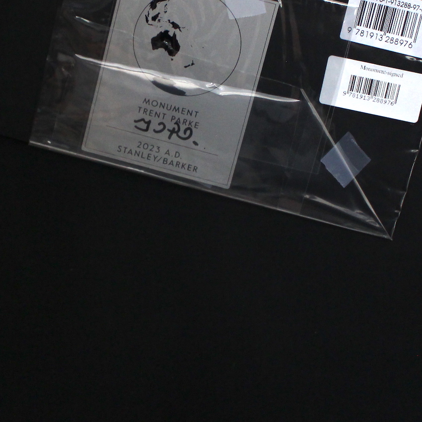オーストラリアを代表する写真家のひとりであるトレント・パークの写真集『Monument(Signed)』。処女作で都市を題材にした『Dream / Life』で瞬く間に注目を集め、90000kmを横断し変わりゆくオーストラリアの文化・人々の姿を描写した『Minutes to Midnight』は2003年ユージン・スミス賞受賞。2015年に発表した『The Black Rose』や近年の『Crimson Line』『Cut the Sun』も大反響を呼び、現在のアート写真界を牽引する写真家であり、アレック・ソスらと並びマグナム・フォトを先導するビジュアル・アーティストです。自分が生まれ暮らしてきたオーストラリアという地を愛し、自国の生活や文化を見つめ続けてきたパークですが、こちらは『Dream / Life』以来、都市を題材にしたモノクロがメインで構成された一冊。田舎町からシドニーに上京して目にした「群衆」たち。見たことのない新種族とも感じたという彼らをメインモチーフに、あっと言う間に命を失う「蛾」の大群の姿を時折重なり合わせ、「都市」「宇宙」「日常」「破壊」といった言葉を連想させる作品群です。7時間で即完売したという初版本。銀プレートに写真家サイン入り。