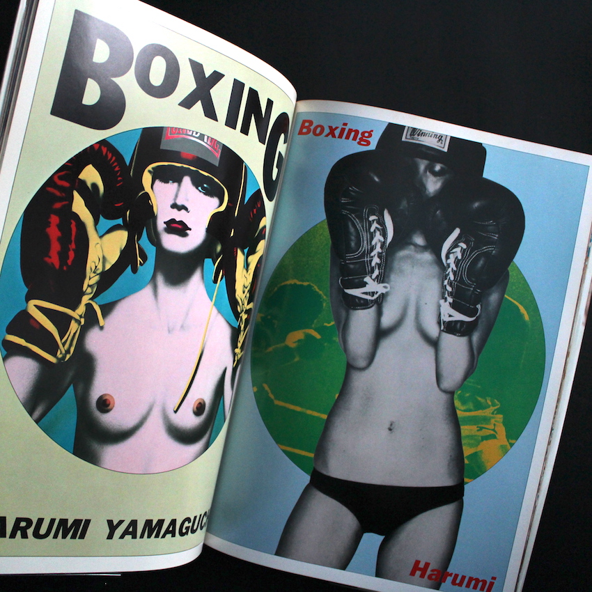 日本の女性アーティストである山口はるみの作品集『Harumi Gals / Parco Views2.(Eighth Printing, With OBI)』。クリエイティブ・ディレクター小池一子とアート・ディレクター石岡瑛子らと共に、PARCO広告の全盛期を築いた一員の一人であるイラストレーター山口はるみ。学生時代から絵画に興味を持ち、東京芸術大学油画科卒業後に、西武百貨店宣伝部に入社、1969年にはフリーランスとなり、PARCOなどのコマーシャル・イラストで活躍。エア・ブラシの画法を確立し、色鮮やかで華麗時にエロティックな画風から生み出されたハイパーリアルの女性たちは「はるみギャルズ」と称され話題になりました。本書は1978年にPARCO出版より刊行された作品集。横尾忠則が監修を務め、沢渡朔のフォト・パロディや吉行淳之介、和田誠、田中一光、草森紳一、山城隆一、つかこうへい、萩原朔美らのテキストなども収録された、豪華アーティストによる共演。自身がモデルとなったイラストレーションも含めて代表作品100点が掲載されています。第8刷。帯付。総じて美品。