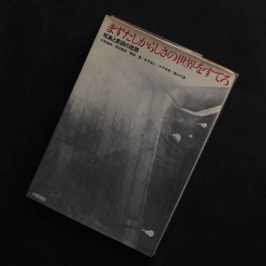 日本の写真家中平卓馬と批評家多木浩二による共編作品集『まずたしからしさの世界をすてろ』。本書は、中平卓馬、高梨豊、多木浩二、岡田隆彦、森山大道によって創刊された写真同人誌「プロヴォーク」が残した写真・言語思想をまとめた総括的作品集。「写真に何が可能か」「生ける現在」「<対談>写真という言葉をなくせ」「眼と眼ならざるもの」「『事実』と『映像』」「リアリティの復権」の6部構成、その部間に同人のビジュアルが収録されています。「写真とは何か」「映像とは何か」「言葉とは何か」そのような設問に対する答えは用意されておらず、著者曰くは「未完の断片の集積」。しかし「写真の本質とは?」その答えが見つかっているならば当に写真を撮る必要はなく、不断に変わりゆく思考こそがプロヴォークの存在意義であったという暗黙の主張が、タイトル「まずたしからしさの世界をすてろ」にも込められていたのかもしれません。(The Japanese Photobook 1912–1990 収録)